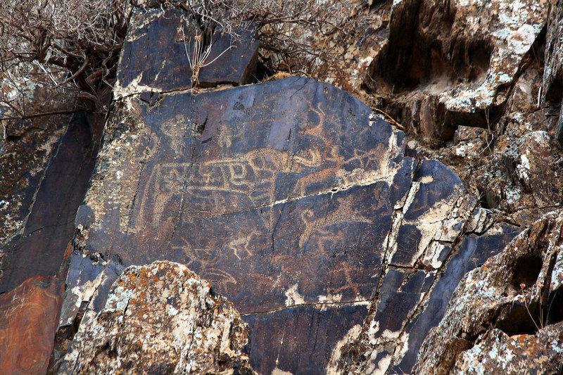 Но всё же главное – это следы, оставленные людьми. Некоторые из этих следов довольно легко идентифицируются. Национальные научные сообщества активно ищут в пустыне кладбища 17-19 века, оставшиеся от брошенных поселений. Изучают и классифицируют памятники на них. Не все, разумеется. Только политически верные – национальные. Сложнее дела обстоят с памятниками, оставленными не мусульманами и не монголоидами. О них не то чтобы не говорят, а говорят немного смутно и не конкретно. Во всяком случае напрашивается мысль, что с этим пока не решили, что делать, а поэтому не делают ничего. В целом – не удивительно. Ведь куда полезнее для близости к властям разбираться с «тамгами» подродов различных казахских родов. Они есть на старых могилах. Выглядит это примерно вот так:
