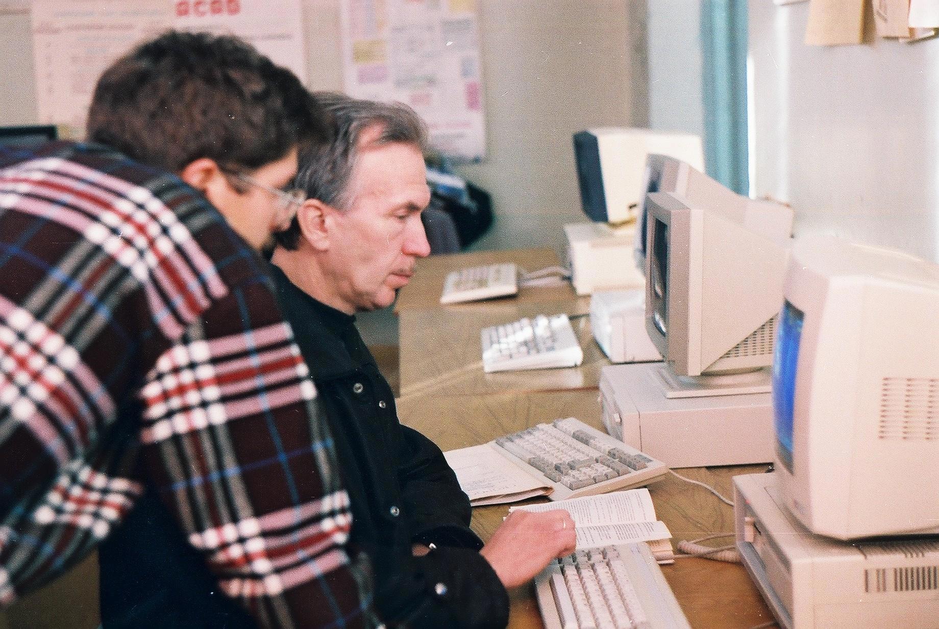 Ещё из институтского. Компьютерный класс нашей кафедры, мой руководитель диплома Дим Димыч Кукушкин: