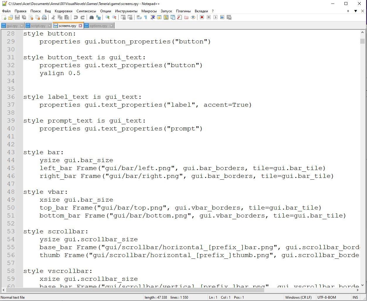Правда, чтобы создавать свою новеллу, нужно быть и художником, и писателем (причем достаточно лаконично, не забывайте, это все-таки вид игры, диалоги должны быть максимально информативными, а действие - динамичным). А еще чуть-чуть программистом. Потому что создание новеллы выглядит так: