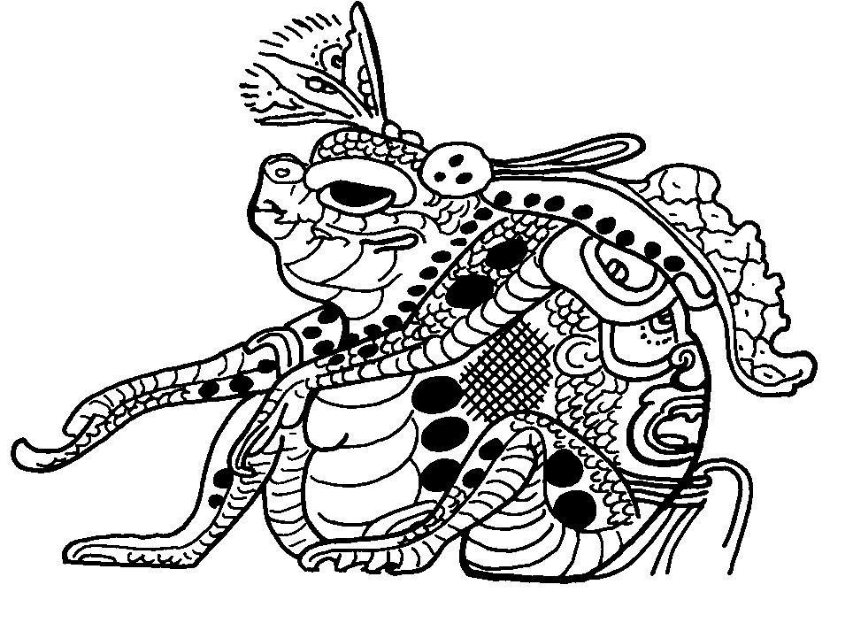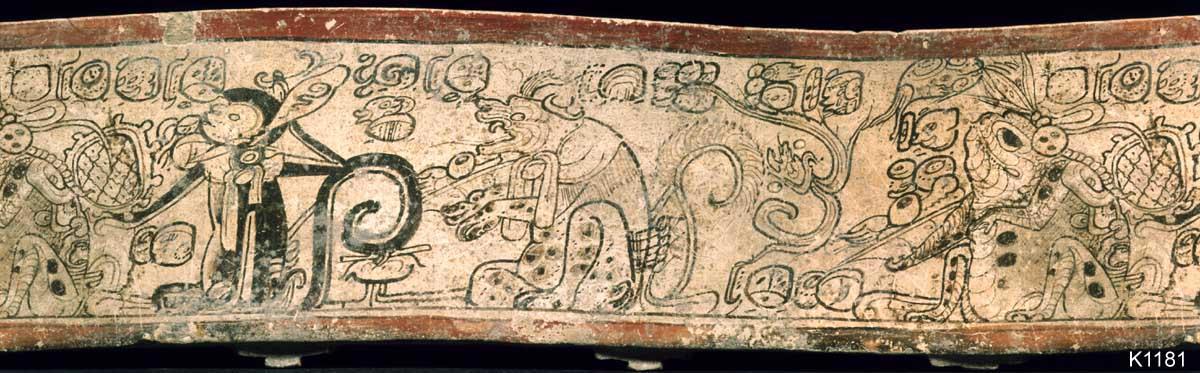 Слева лягушка Виналь. Лицо бога С на спине. Ваза классического периода.
