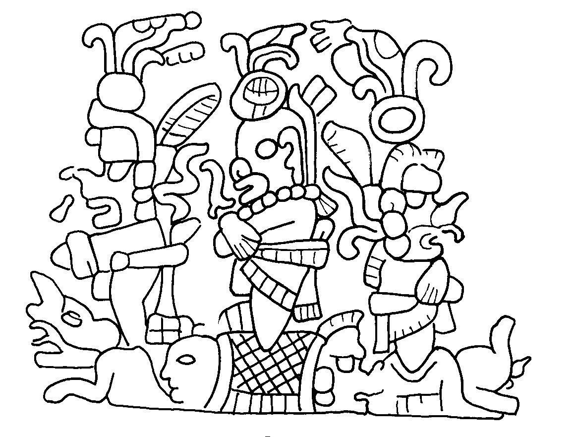 Прорисовка стелы из Ушмаля. Бог С появляется из панциря черепахи. Возможно, сцены появления богов из панциря черепахи символизируютпрорастание зерна.