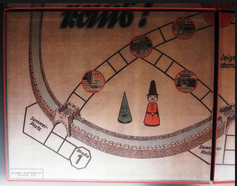 Автор: Kozyabra"Juden Raus!", пожалуй, была одной из самых политнекорректных настольных игр в истории. Она предлагала немцам попрактиковаться в семейном кругу в выселении евреев. Причём придумали её не в ведомстве Геббельса, а в коммерческом издательстве Günther&Co (Дрезден). Оно решило идти "в ногу со временем" и запустило эту игру в 1936 г.