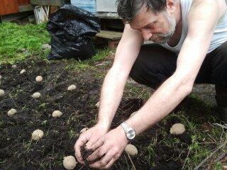 А картошку так можно? Э! Картошку можно еще интереснее. Просто раскладываете семенные картофелины на земле, будь то бритый газон или приствольные круги деревьев, и присыпаете каждую картофелину горсточкой земли.
