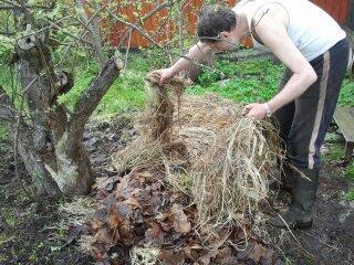 Затем засыпаете все это полуметровым слоем соломы. У меня ее не было, и я ограничился менее толстым слоем скошенной травы и листьев.