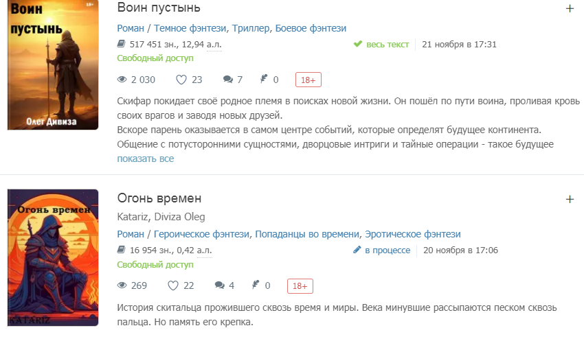 Разъясняю сразу: в обоих произведениях текст - мой (в Воине - на 100%, в Огне - на 70%). Так что объяснения типа "вот, у тебя качество текста на разном уровне" - не канают. И про сюжет тоже можно не говорить, ибо в "Огне" он только только начался.