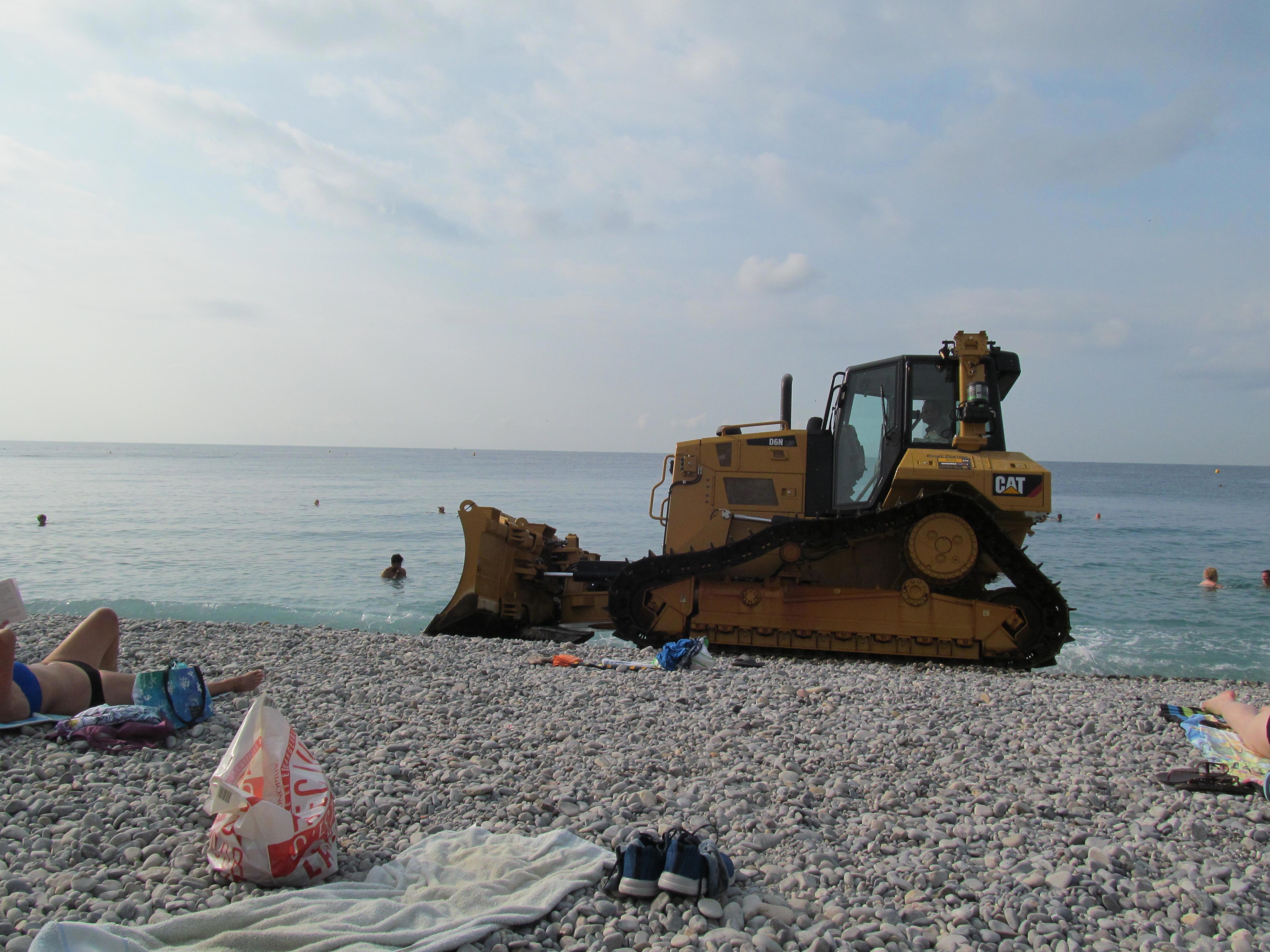 По пляжику ездил бульдозер – ровнял гальку. Камни большие, лежать неудобно, в море заходить – тоже. Да, вода прозрачная, но почти сразу глубоко – дайверам, наверное, хорошо, а так – никакого удовольствия. Да я и не большой любитель пляжей – погулял по старому городу, купил пива, вернулся на набережную, сел на синий стульчик... Сижу, пиво пью) С моря ветерок дует – красота.