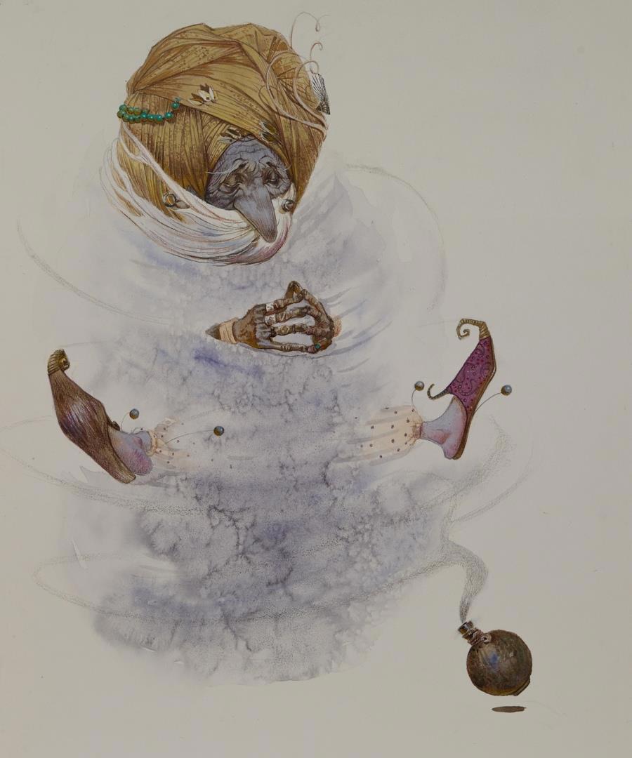 Мои главные задачи были: раскрыть фантастический и в то же время комический образ джинна, наполнить каждую иллюстрацию атмосферой чуда, соединить сказочность и повседневность. Я пыталась создать образные иллюстрации, которые составят с произведением единое целое.