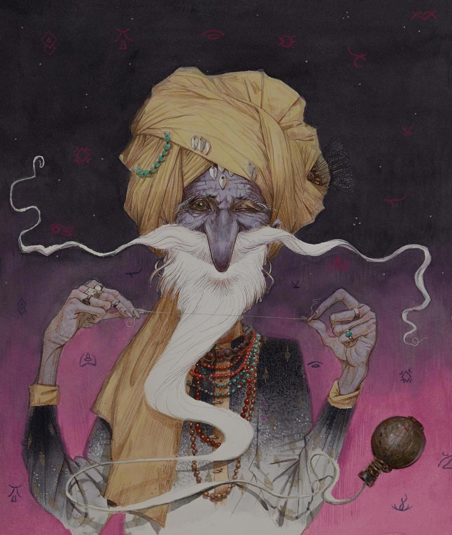 Когда читаешь книгу, то какие-то образы сразу приходят ярче других. Их сразу хочется запечатлеть. Пока читаешь, делаешь небольшие зарисовочки того, что ярче всего всплывает в голове. Перечитывая, находишь более интересные для себя детали. Тогда ты уже прорисовываешь и продумываешь композицию более подробно. Так рождается иллюстрация. Когда момент простой и неинтересный, его и не запомнишь и не зарисуешь. Самые яркие вспышки и становятся иллюстрациями.