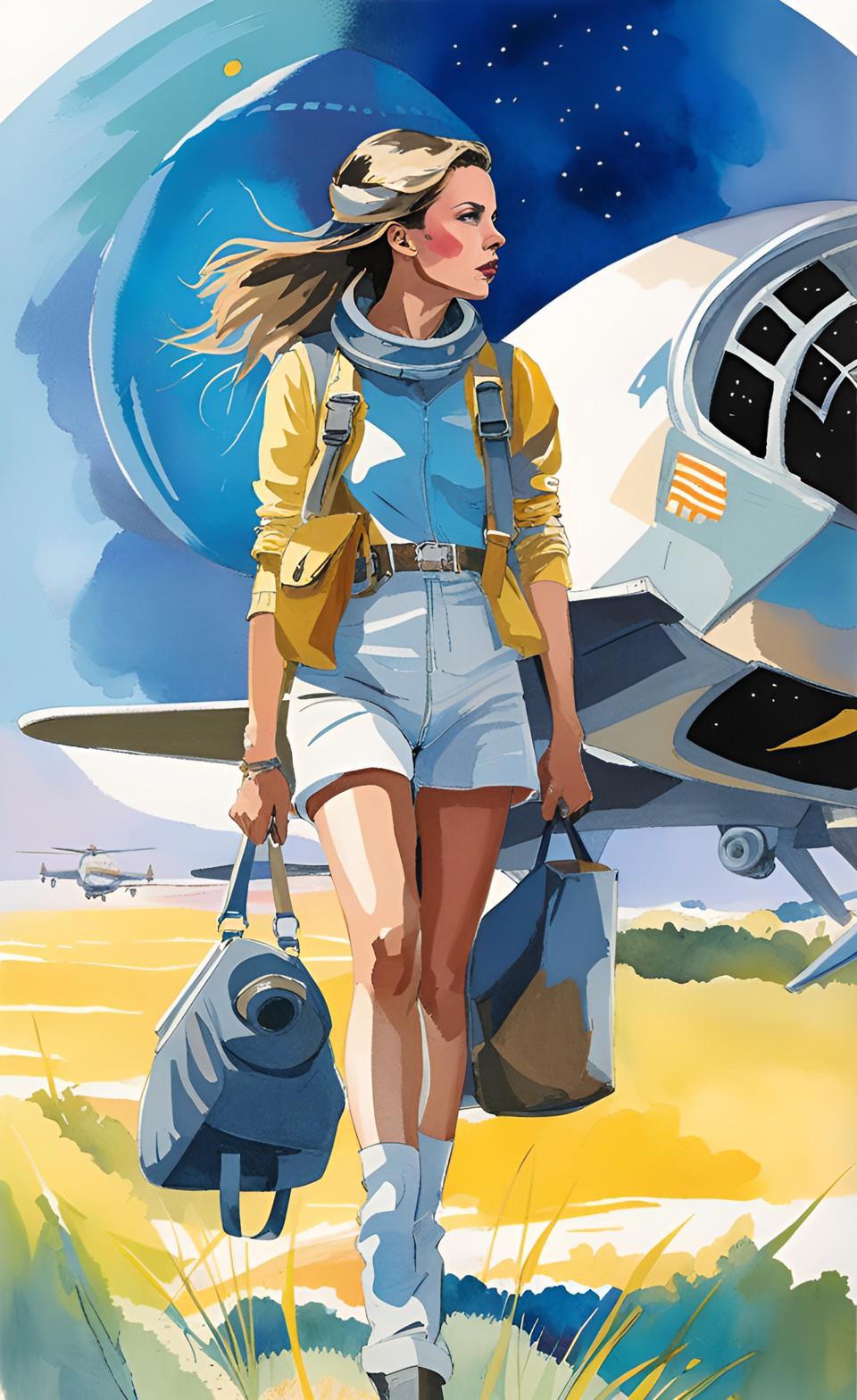 Вот, например, первые три картинки были сделаны на основе одного и того же референса - известной фотографии Амелии Эрхарт. И получились три разных по стилю и содержанию героини. Ровно столько, сколько надо!