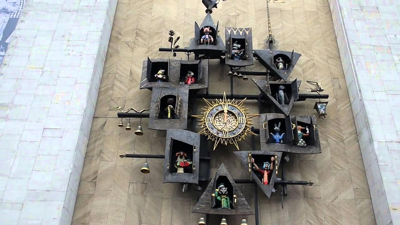 Часы имеют высоту 4 метра и ширину – 3. Раз в час внутренний “оркестрик” играет “Во саду ли, в огороде” и открывается один из 12 домиков, в которых живут герои сказок. Лишь в полдень и в полночь на свободу выходят обитатели всех домиков сразу. Отсчитывал время, приводил в движение механизмы сказочных персонажей и озвучивал их голоса внушительный электромеханический двигатель, который обслуживала целая бригада специалистов.