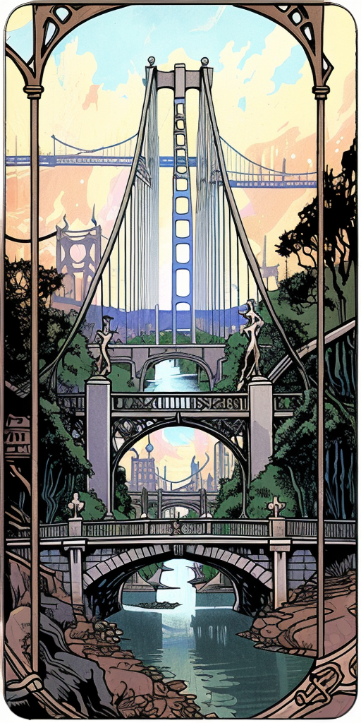Тут всё очень тонко. Нейросеть может сгенерировать очень красивое, захватывающее дух изображение... которое будет абсолютно не соответствовать ситуации или соответствовать слабо. К «Одержимости» я нагенерировал штук пятьдесят мостов — гротескных, изящных или бруталистских, но из них лишь не все из них подходили к описанию местности: