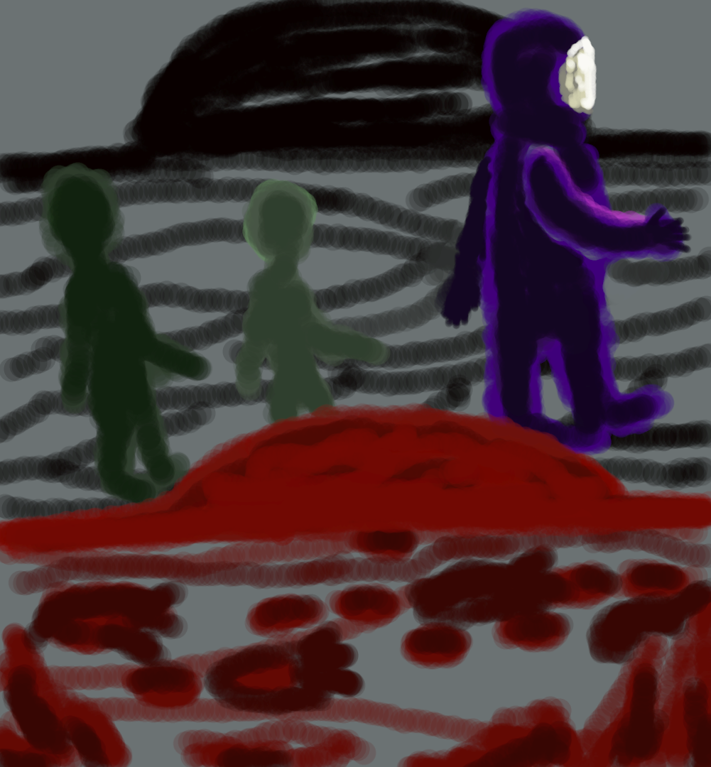 Автор: Константин Елфимов Жуть есть? Где Лунатики? Где инопланетяне? Два солнца есть, чёрное и красное, планеты есть, следов полно... Всё есть... Не вижу -- где Лунатики? Примитивизм снова в моде!