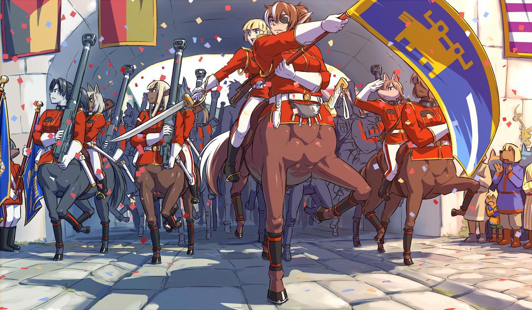 На параде (у кентаврихи от торжественного случая аж повязка на другой глаз съехала).