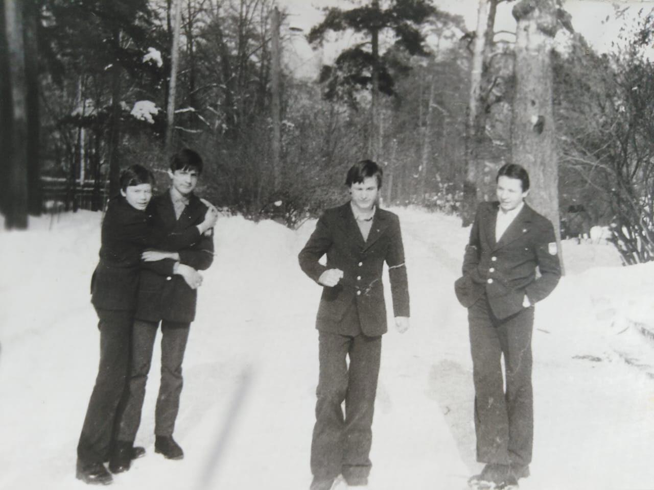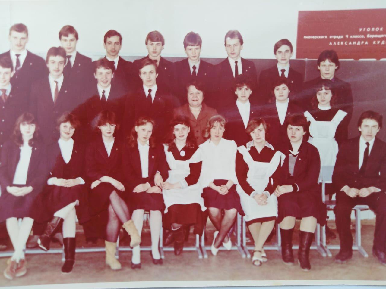 На фото: я и мои одноклассники. У всех есть комсомольские значки. На фото, где мы сидим в ряд. Рядом стоят одноклассники, и члены разных молодежных группировок. "Быковские", "Пожарные", "Ильинские".
