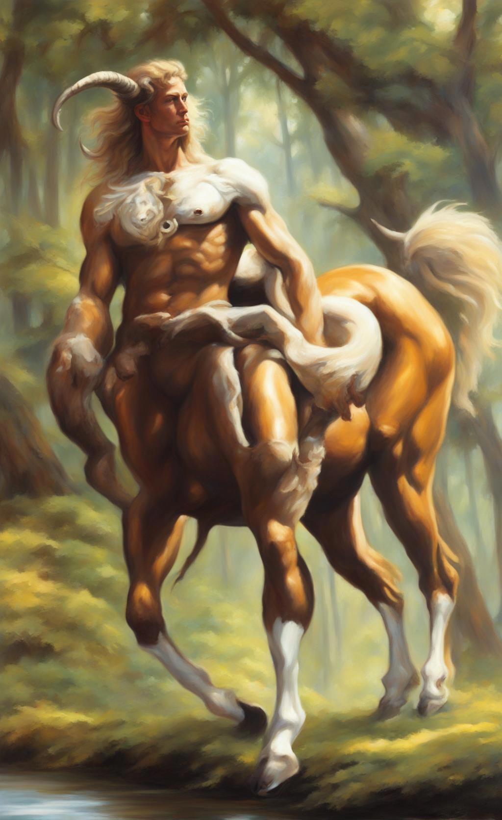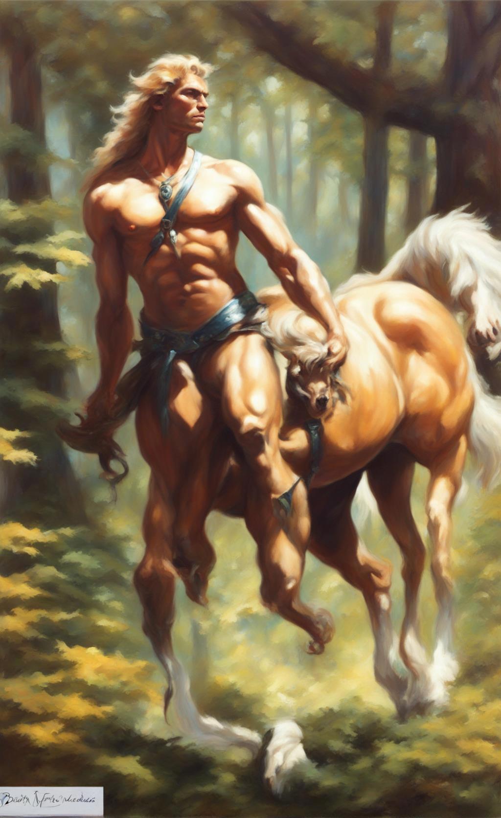 Понимаете, дорогие друзья, точно то! Именно так, как увидел! Я убился об нейросеть - как художник убивается об лист бумаги, чтобы добиться точного соответствия рисунка внутреннему образу. Только голову Кентавра я руками поправлял, потом генерировал по эскизу, снова поправлял, генерировал уже по новому эскизу восемнадцать раз.