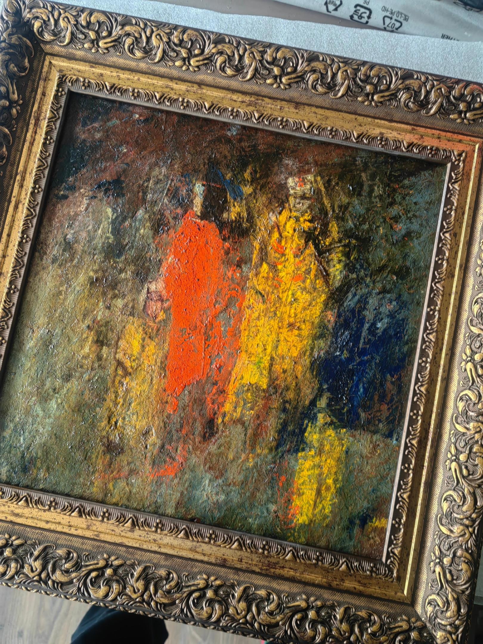 20. И последняя на сегодня работа. Хотя, ее и работой нельзя назвать. Это палитра. Но каждый видит в ней что-то свое. Я вот вижу священнослужителя, женщину в красном и ребенка.