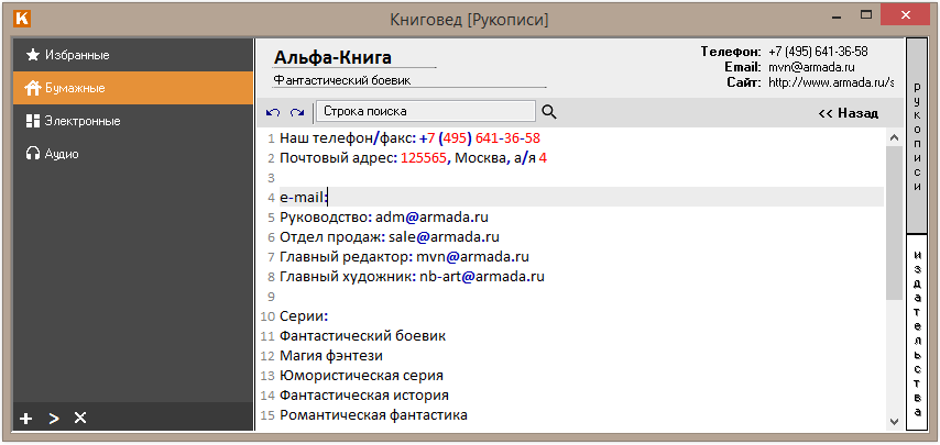 Программа органайзер для учета рукописей и информации по ним, а так же информации по издательствам. Писал для себя, но может пригодится и другим.