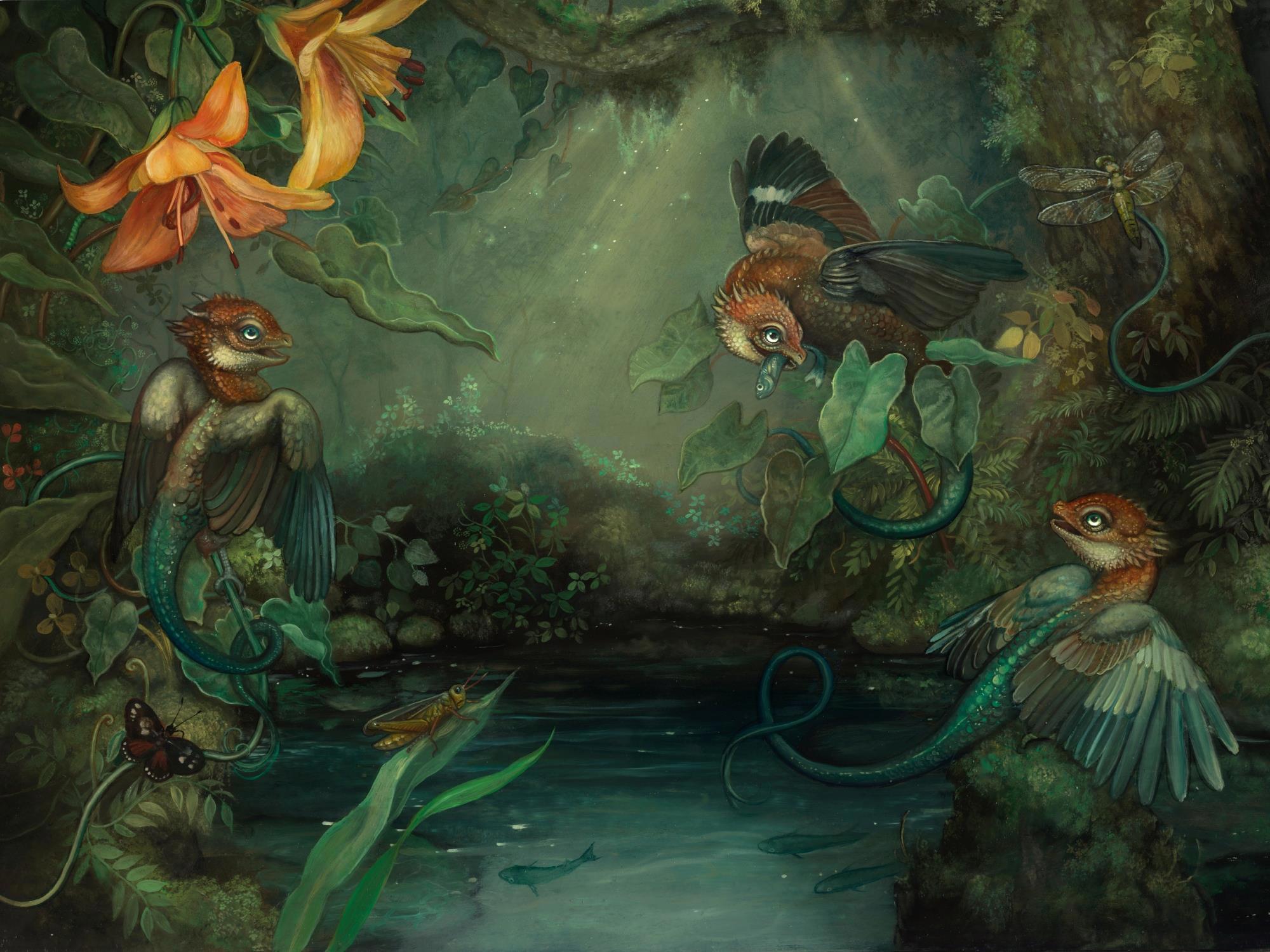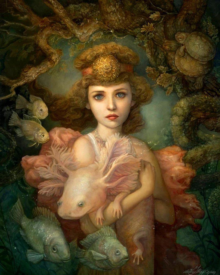 По стилю мне они напоминают то ли прерафаэлитов, то ли барочную живопись (но куда более живую при этом). Полагаю, и то и другое влияло на художницу в период становления, только она дала этим стилям своё, более современное прочтение.