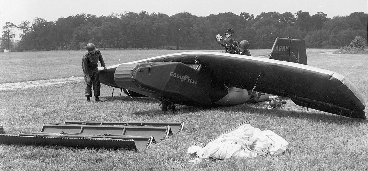 После этого создание надувных самолётов в мире как-то не задалось, хотя нельзя сказать, что надувные конструкции были изобретателями забыты вовсе. Во время войны, в 1944 году американцы выбросили на территорию Франции десант, состоявший из… надувных парашютистов. Предусмотрели на только манекены, но даже специальные имитаторы стрельбы, которую должны вести настоящие десантники ещё в воздухе. Мало того, если бы кому-то с досады захотелось бы пнуть надувного ворога ногой, то тот ответил бы взрывом противопехотного взрывного устройства. Правда данных об эффективности этой военной хитрости не сохранилось. Зато известно, что такой же трюк американская армия чуть позже использовала на Филиппинах против японцев, что может свидетельствовать о том, что первый опыт прошёл успешно. Но это всё же не самолёты…