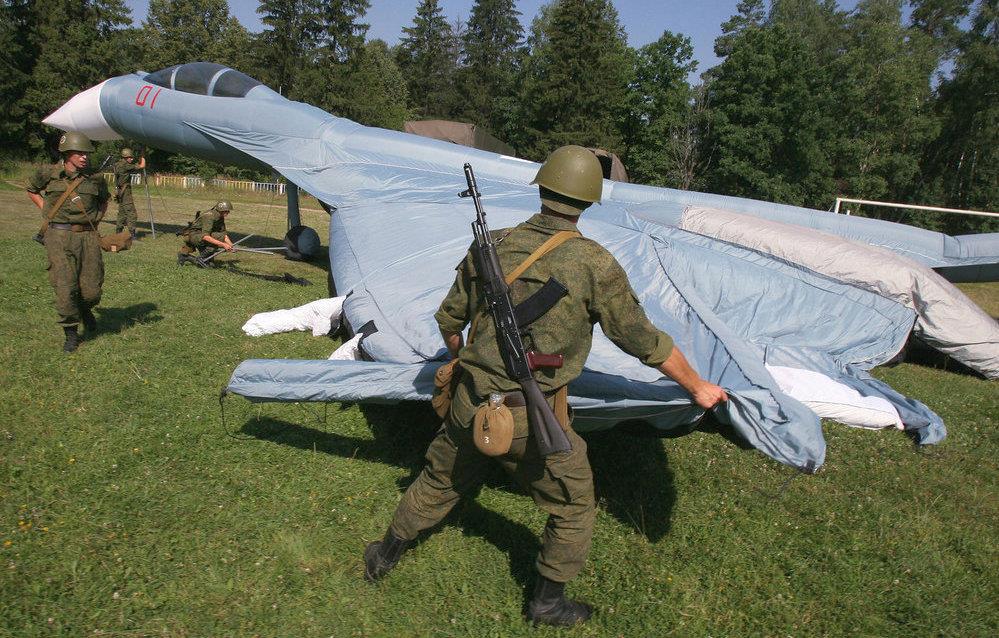 Вот военные собирают и надувают машину перед взлётом на аэродроме: