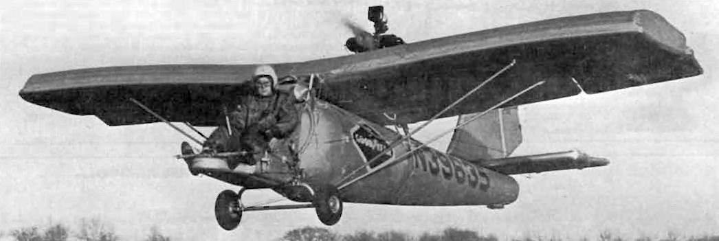 События оживились уже после войны. Например, в 1955 году в воздух поднялся Utility Mk.1 с двигателем мощностью в 38 л.с. Он показался мне интересным потому, что здорово похож на одну из конструкций Гроховского (я предупреждал – запомните картинку). Нет, никто ничего скорее всего не украл – просто похожие задачи рождают похожие решения. Тем более, что у нового самолёта была своя оригинальная особенность – крыло обеспечивалось постоянным наддувом от небольшого пропеллера перед передней кромкой через специальное отверстие: