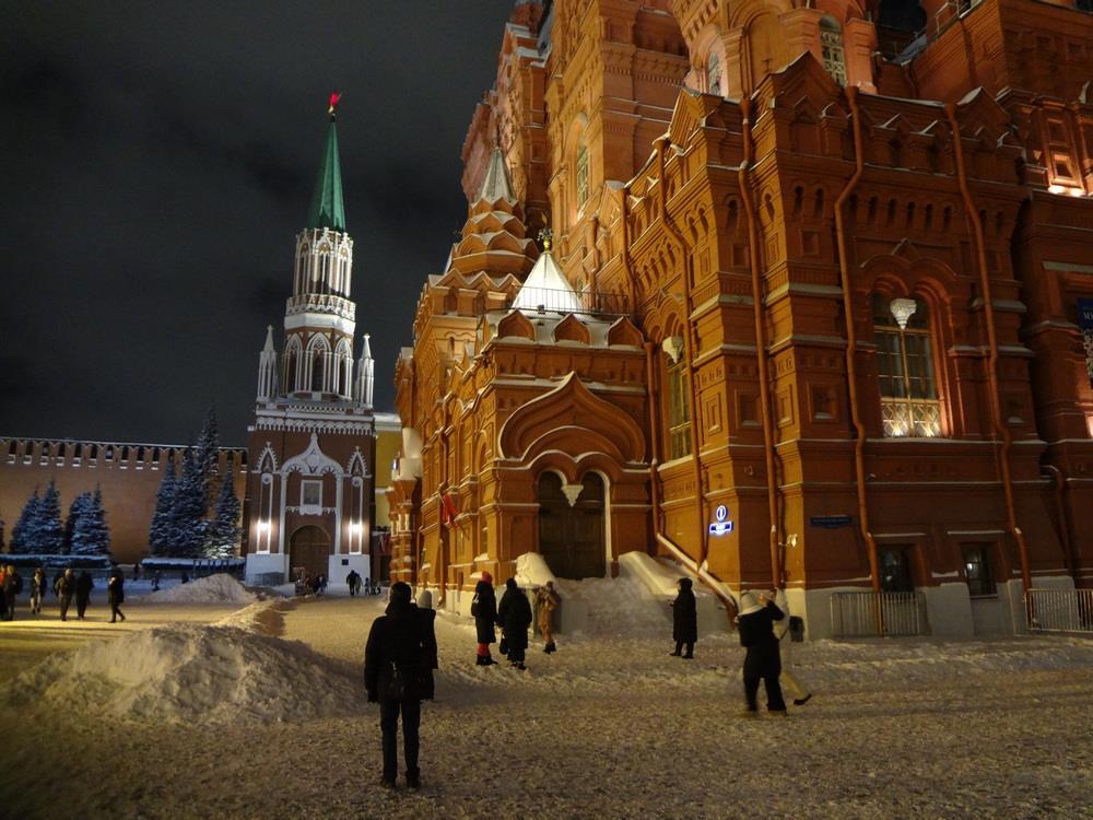 5. Красная площадь... ну такое. Диабаз по нынешней погоде скользкий - словно мылом намазан. При нас мужик моего возраста поскользнулся, упал и так треснулся затылком, что звук был словно арбуз на асфальт шмякнулся. Хорошо - скорая рядом была, но мне перспективы мужчины радужными не кажутся - без сознания лежал минуту, а то и больше. Глазом посмотреть на Кремль и площадь приятно - но ходить... Было что-то коровье на льду частенько.