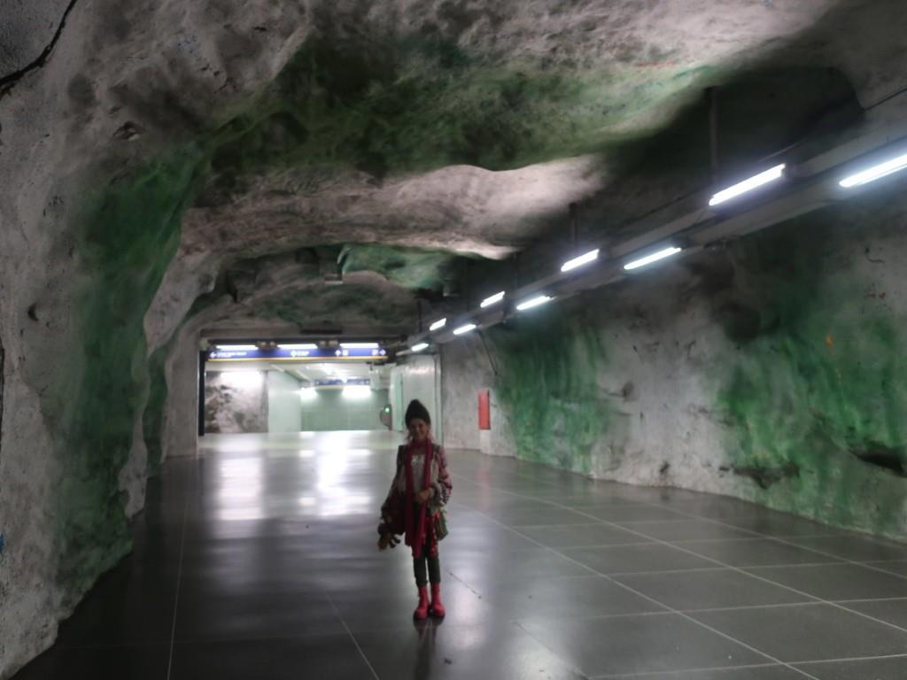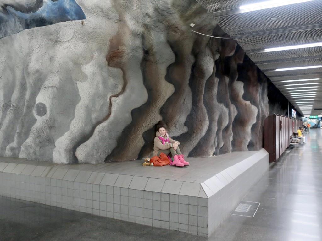 Жена готова щебетать и хохотать до бесконечности, но я вынужден тянуть её оттуда - на вечер планировано стокгольмское метро - говорят оно - необычайное. Якобы строили его в граните, а когда выбили туннель, то так и оставили. Посмотрим! Мы постарались выбрать самые замечательные станции.