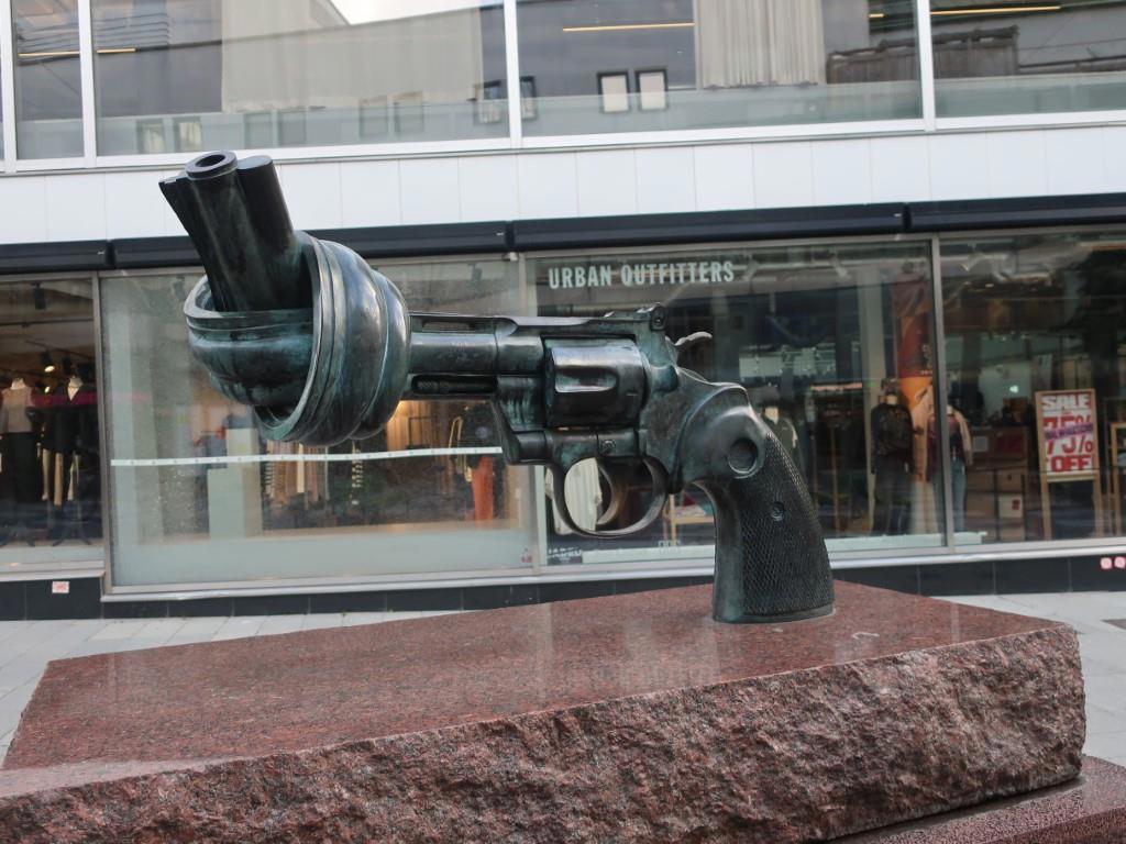 Следующая точка - револьвер с завязанным в узел стволом knotted gun. Это - оригинал, копии распространены по миру, одна, например, стоит в Нью-Йорке около здания ООН.