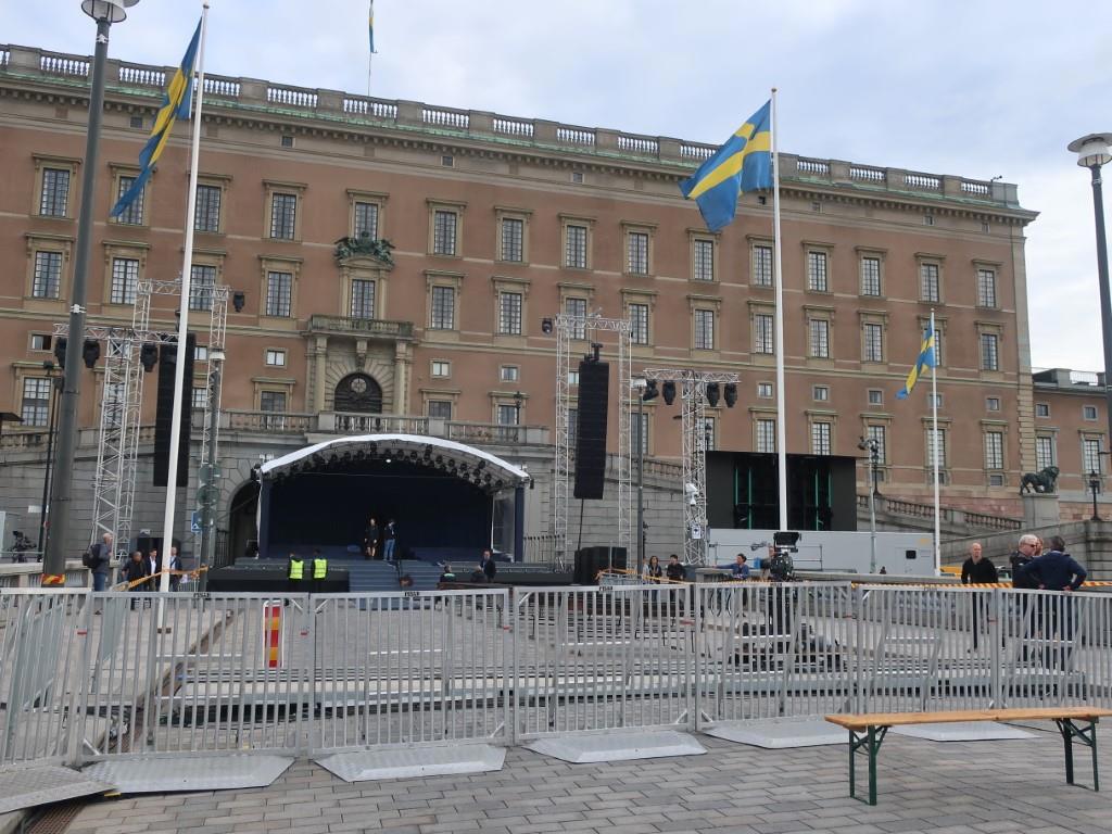 Тут готовят сцену для выступления короля. Карл XVI Густав, вступив на трон, стал самым молодым монархом из династии Бернадотов. В молодости участвовал в стрелковых соревнованиях, любил гонять на машинах, предпочитал Porsche, за что его ругали в газетах, так как патриотично было бы ездить на шведских машинах, согласился платить штраф за превышение скорости. Он является 74-м королем в истории страны.