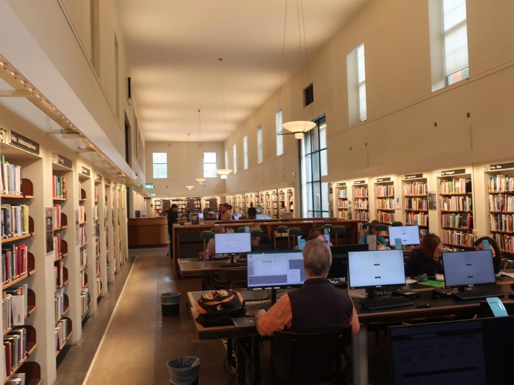 Тут и книги на русском языке есть, не так много, но эта библиотека не университетская, а городская.