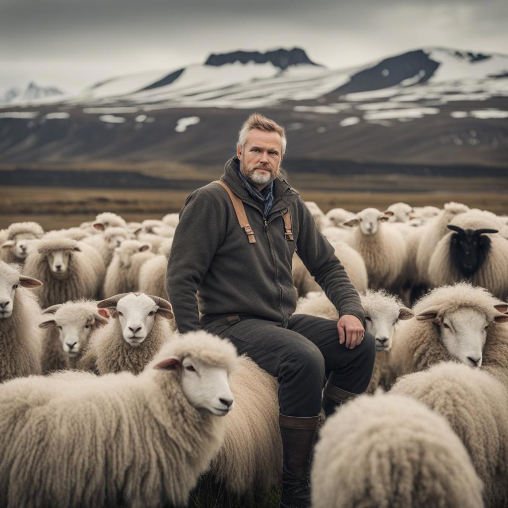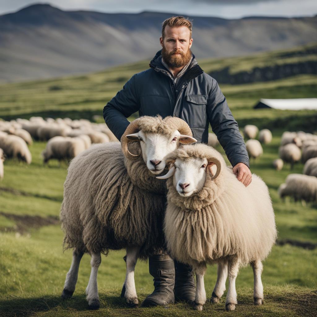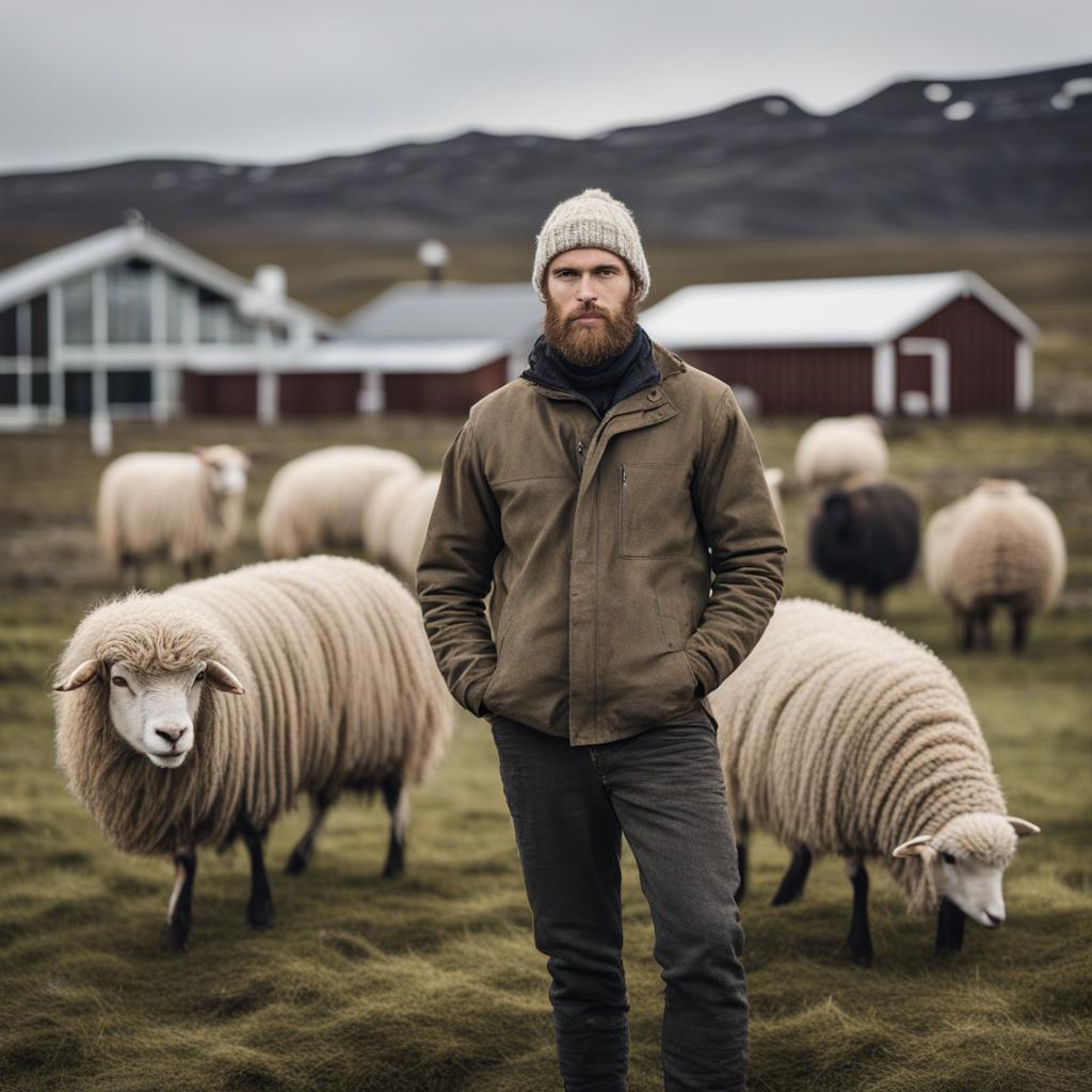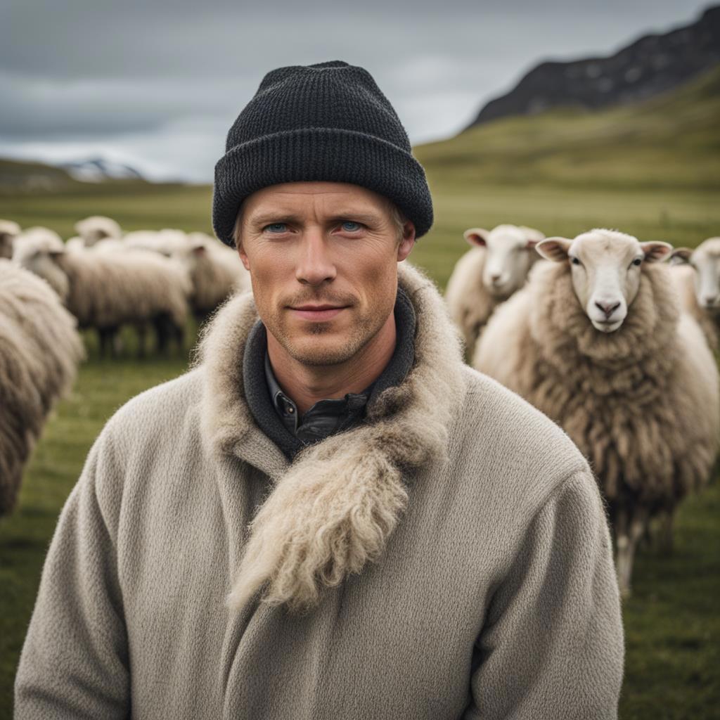 Задача была простая: симпатичный исландский фермер с овцами. Без какого-либо референса. (Не драконов с принцессами же мне рисовать, а викингов и так много было.) (Впрочем, первое слово в промпте было лишним. Несимпатичных исландских фермеров Mage не рисует категорически.