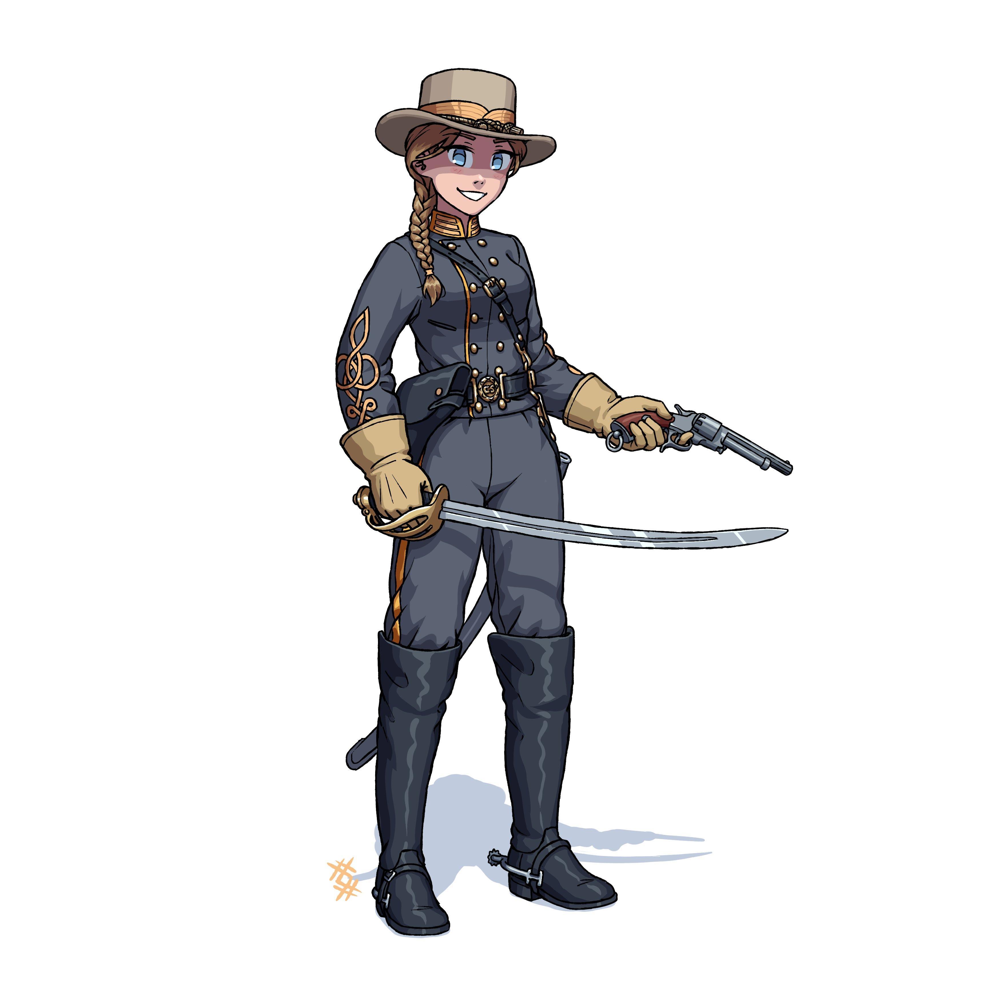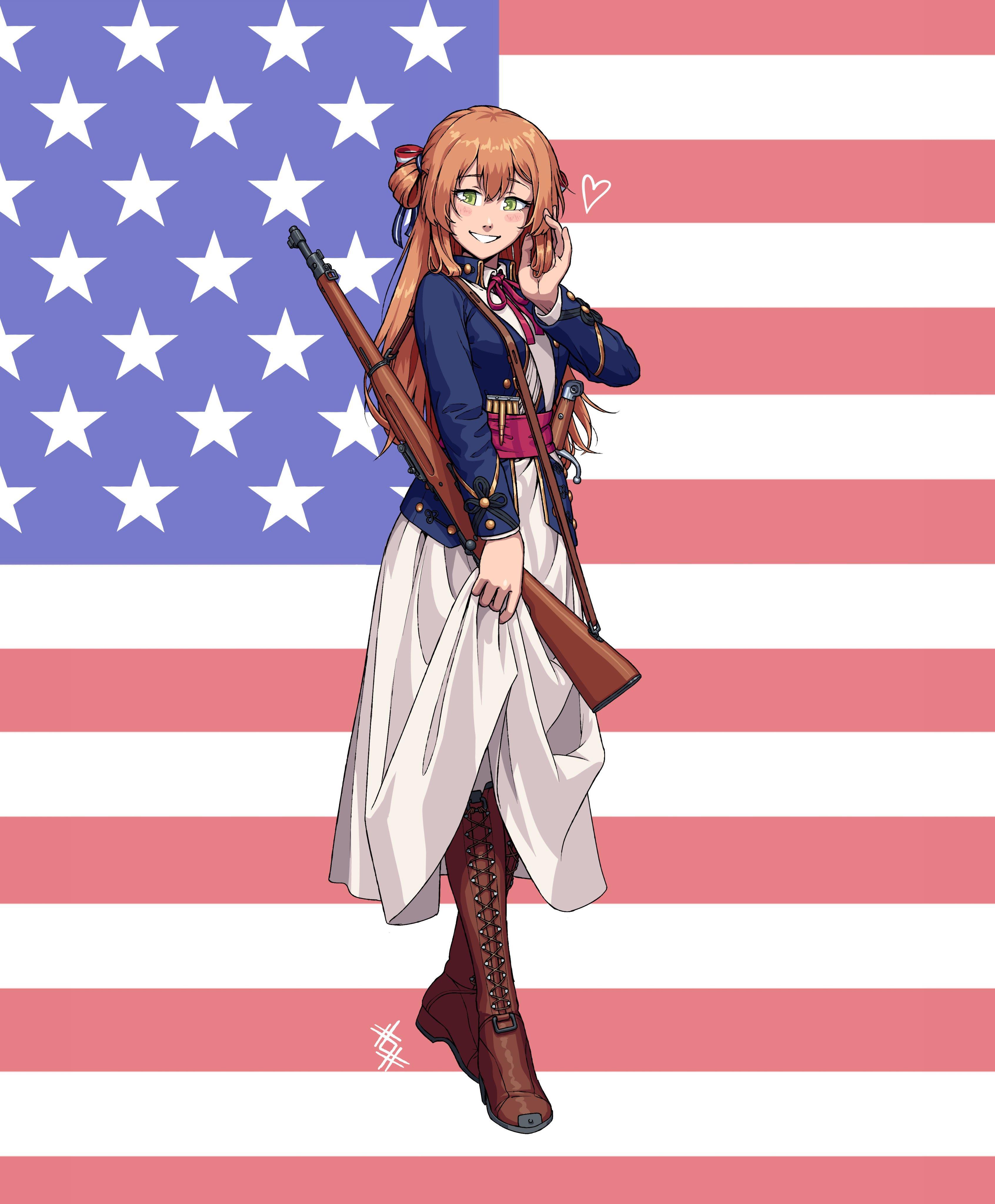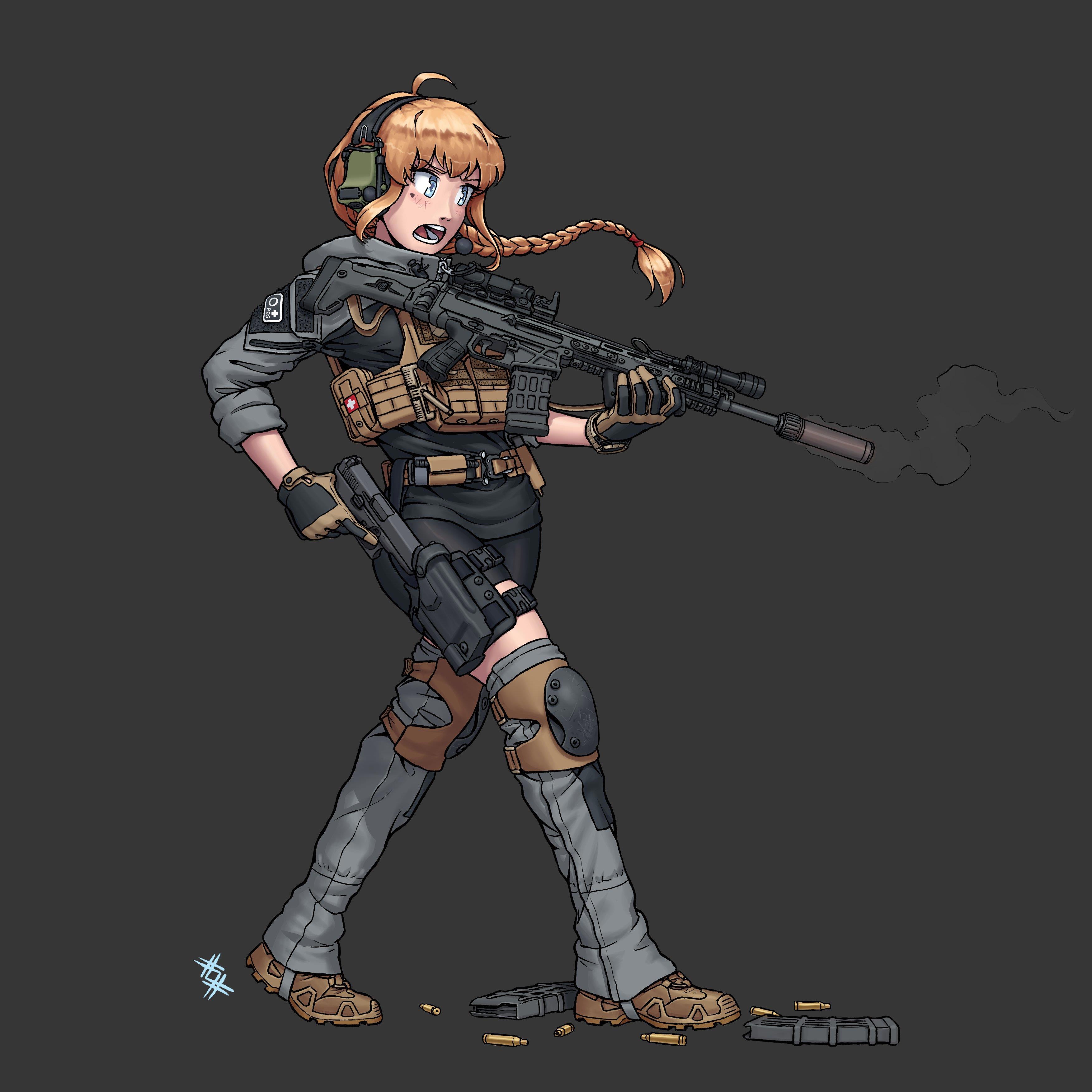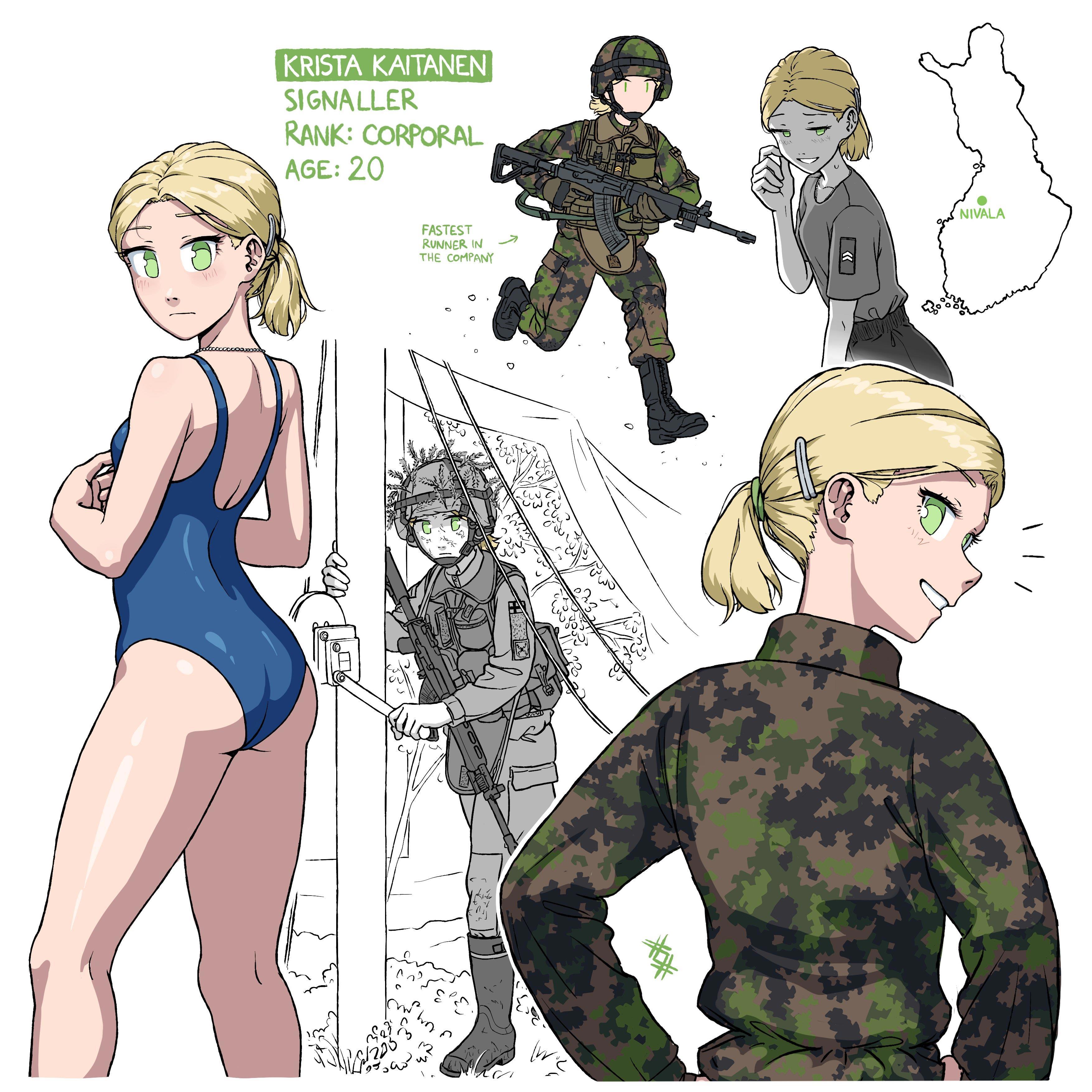 Но также автор часто рисует ростовые портретики разных военизированных девушек, как исторических, так и не очень. Примеры последнего...