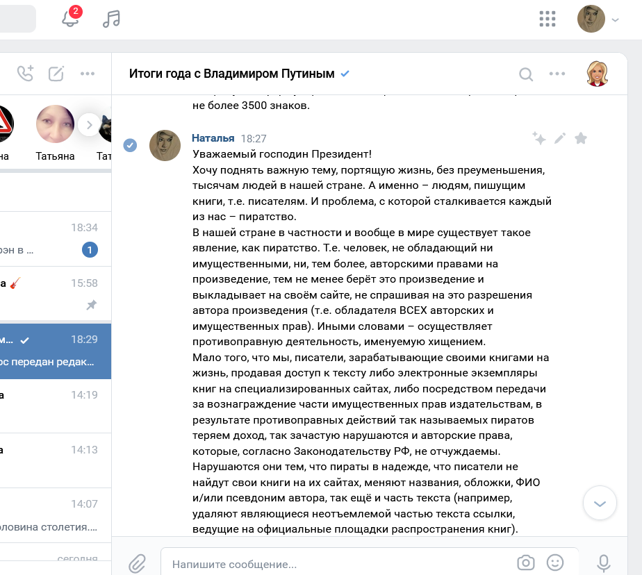 Уважаемый господин Президент! Надеемся на Вашу помощь и просим Вас о защите наших прав и доходов. Больше нам обращаться не к кому, т.к. проблема пиратства обрела, к сожалению, катастрофические масштабы.
