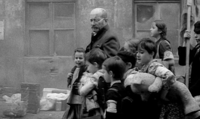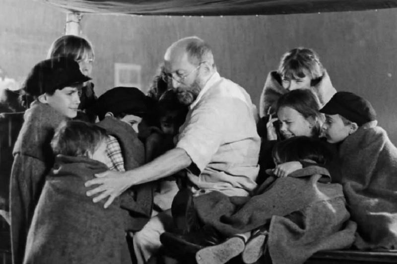 Все обитатели "Дома сирот" поднялись в вагон поезда, отправлявшегося в лагерь. К Корчаку подошел офицер СС и предложил отпустить его, потому что знал, что мужчина - автор книги "Король Матиуш". Он отказался... Через несколько дней, в концлагере Треблинка, Корчак, вместе со своими детьми, вошел в газовую камеру. По дороге к смерти Корчак держал на руках двух самых маленьких деток и рассказывал им сказку.