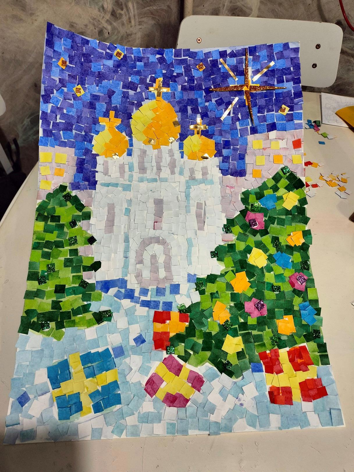 Вот понадеялась на уик-энд! Снова облом. Бурундуки старшие не поехали в деревню с папой и братиком, затусили дома. Зато сделали поделку в садик на муниципальный конкурс: "Рождественская фантазия". Дети клеили сами, так что всё кошерно и по техзаданию (там отдельный пункт уже сделали, мол, не принимаются работы с явными признаками выполнения взрослыми! )