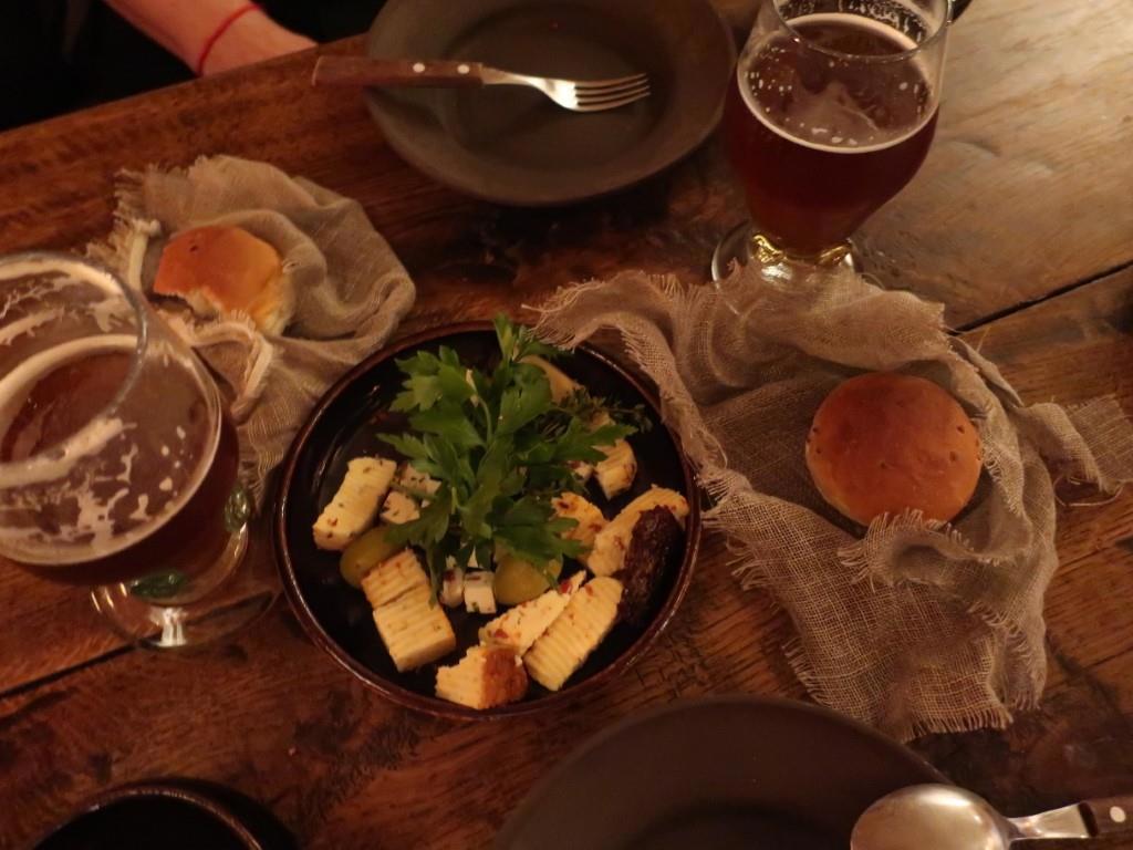 какие-то странные, но вкусные заедки, хлеб в какой-то мешковине.