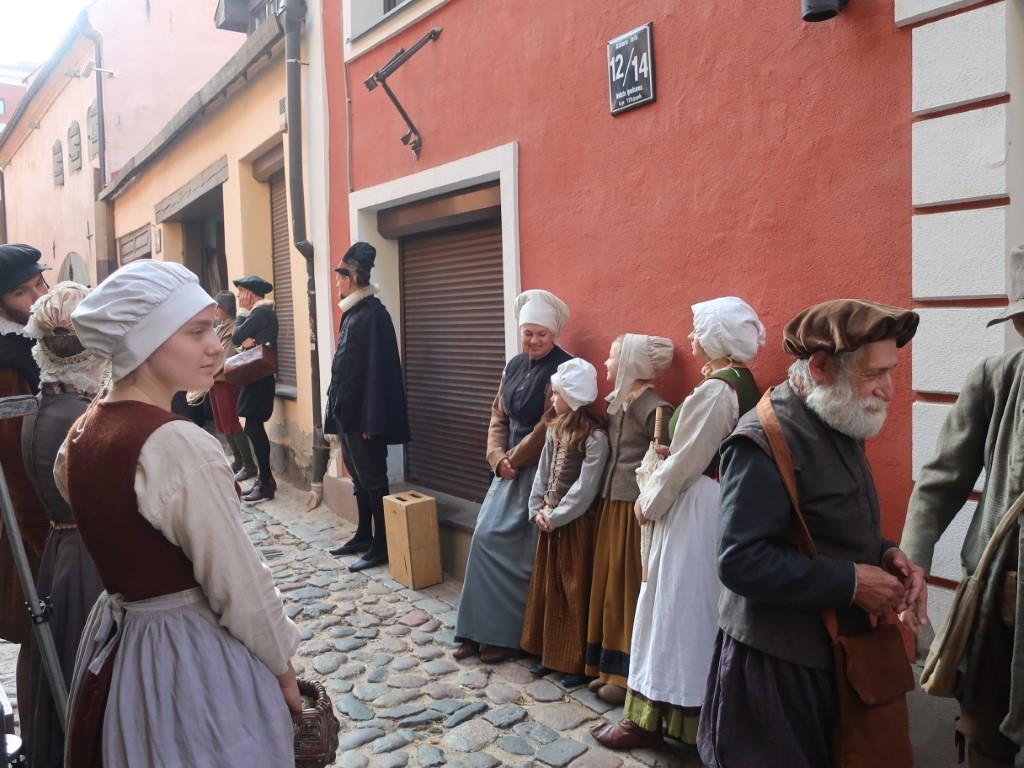 Вот это - Шведские ворота с обеих сторон - часть городских укреплений (cбоку вкопаны, похоже, старые пушки), а за ними снимают исторический фильм.