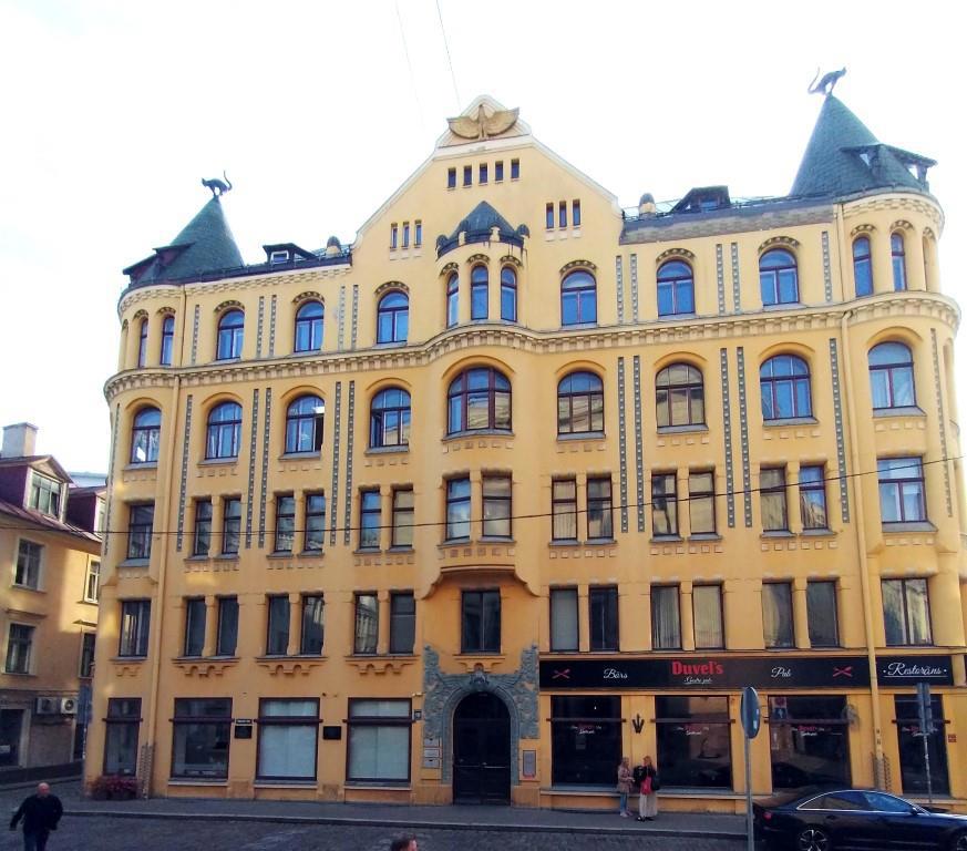 Дом был разбомблен в 1941 году, полностью снесён через 7 лет и восстановлен в 1999. Причём, каждый, кто внёс 5 лат (валюта Латвии до еуро) получал право положить один кирпич. Таких набралось более 5000. «Если меня разрушат, я восстану вновь» — эта надпись на портале здания оказалась пророческой.