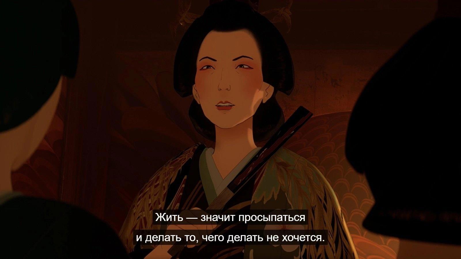 Да, героиня японка, но при этом у неё голубые глаза. И это главный её конфликт с миром — тот факт, что на полукровка и её мать изнасиловал белый человек, кто-то из тех четырёх, кто приехал в Японию торговать опиумом, оружием и плотью (там так и говорят. Речь стопудов о проституции и, возможно, о чём-то ещё). Полукровок презирают и убивают. Поэтому героиня хочет уничтожить белых людей, которые обрекли её мать на несчастье и обрекли на несчастье её и подобных ей. Весь сезон она ловит второго белого человека, потому что первого уже замочила. Параллельно идут сюжетные линии других персонажей: принцессы Акеми, которая не хочет выходить замуж за сына сёгуна Ито (её рост к концу сезона вызывает уважение), настоящего самурая Тенгена, который ищет героиню, чтобы вернуть потерянную честь (привет, Зуко из Аватара: ЛоА), и милого безрукого парня, имя которого я немного подзабыла, но это очень приятный персонаж, который хочет стать великим, для чего помогает главной героине. Ещё там будет слепой кузнец, тоже очень милый персонаж. И госпожа Кадзи, хозяйка борделя и человек, которому приходилось видеть и делать всякое противное, чтобы выжить самой и обеспечить выживание своих девочек.