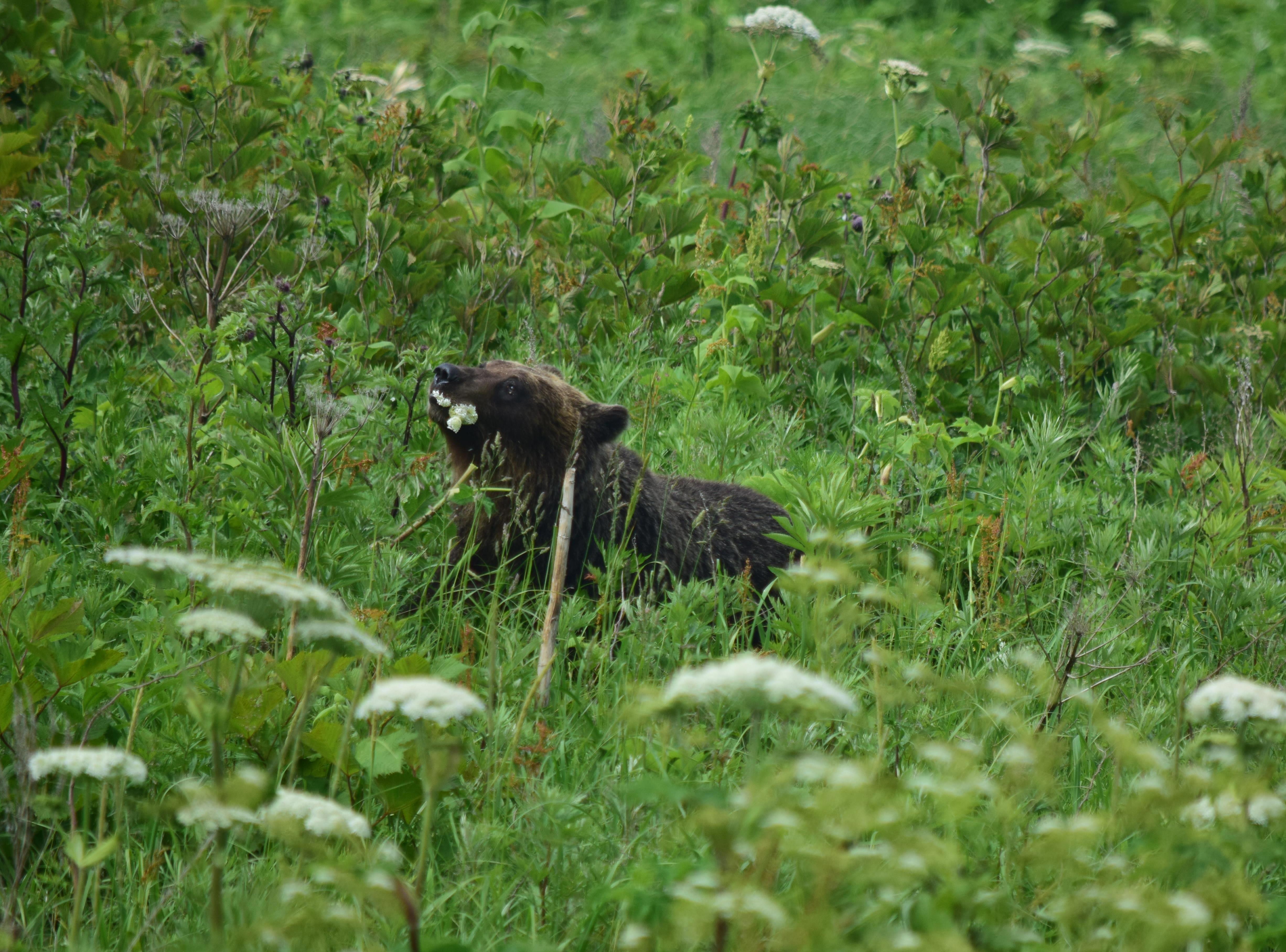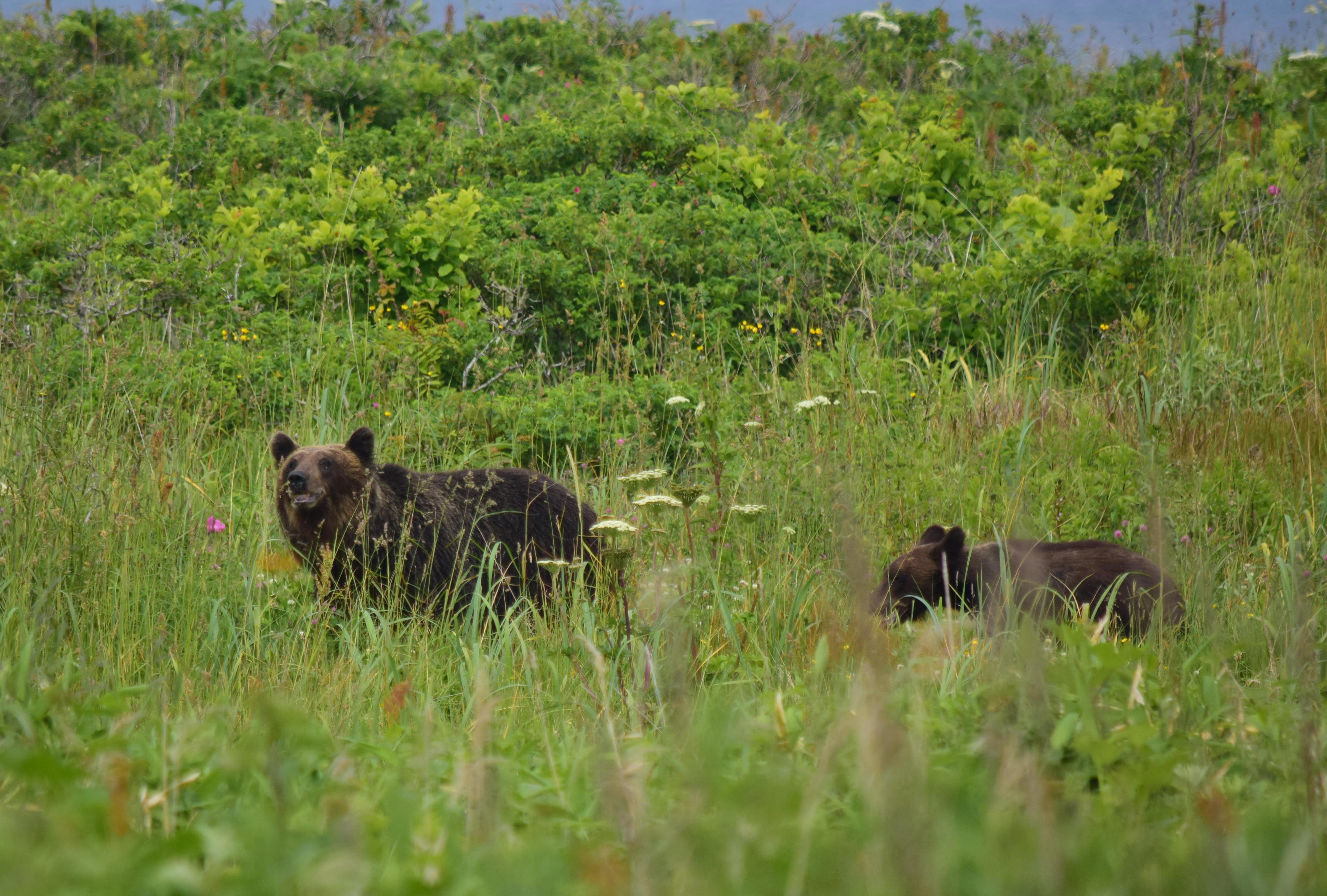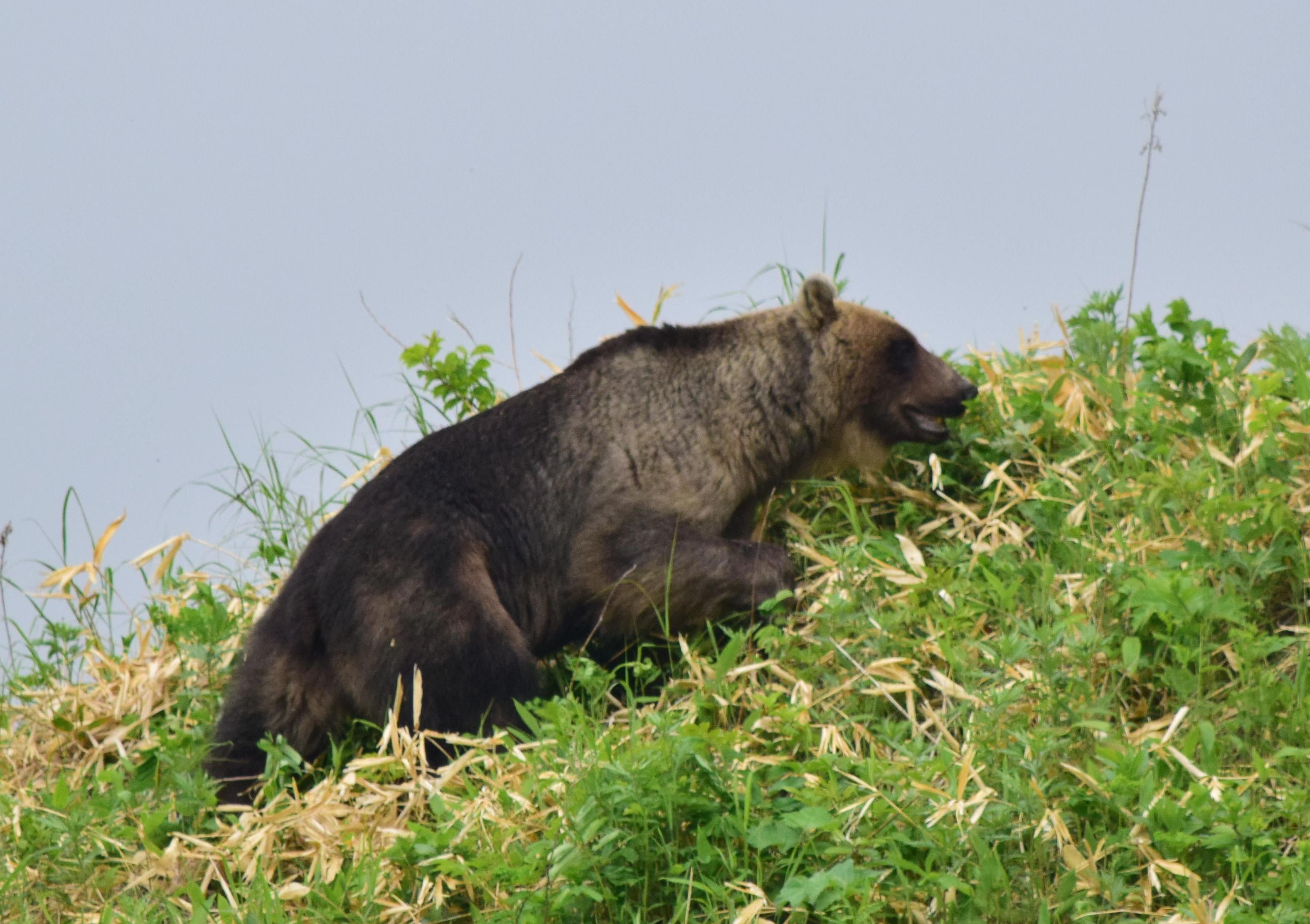 Та самая медведица, которая в том году от меня получила горубшей по мордам. Нынче она привела одного медвежонка (в том году, до середины мая, было двое), да и вообще отъелась. Теперь не отмахался бы))