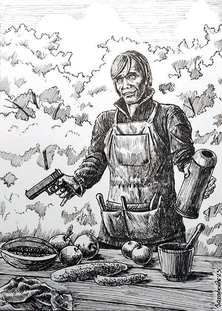 Человек, который рисует для Ника Перумова. Любит нуар и котиков. Разбирается в сортах и видах оружия, доспехов, авто-, пневмо- и электротранспорта. Знает, где должны быть выпуклости у женщин и впуклости у летающих блюдец. Анимирует живых и реанимирует зомби. На короткой руке со всеми художественными монстрами современности. А ещё: