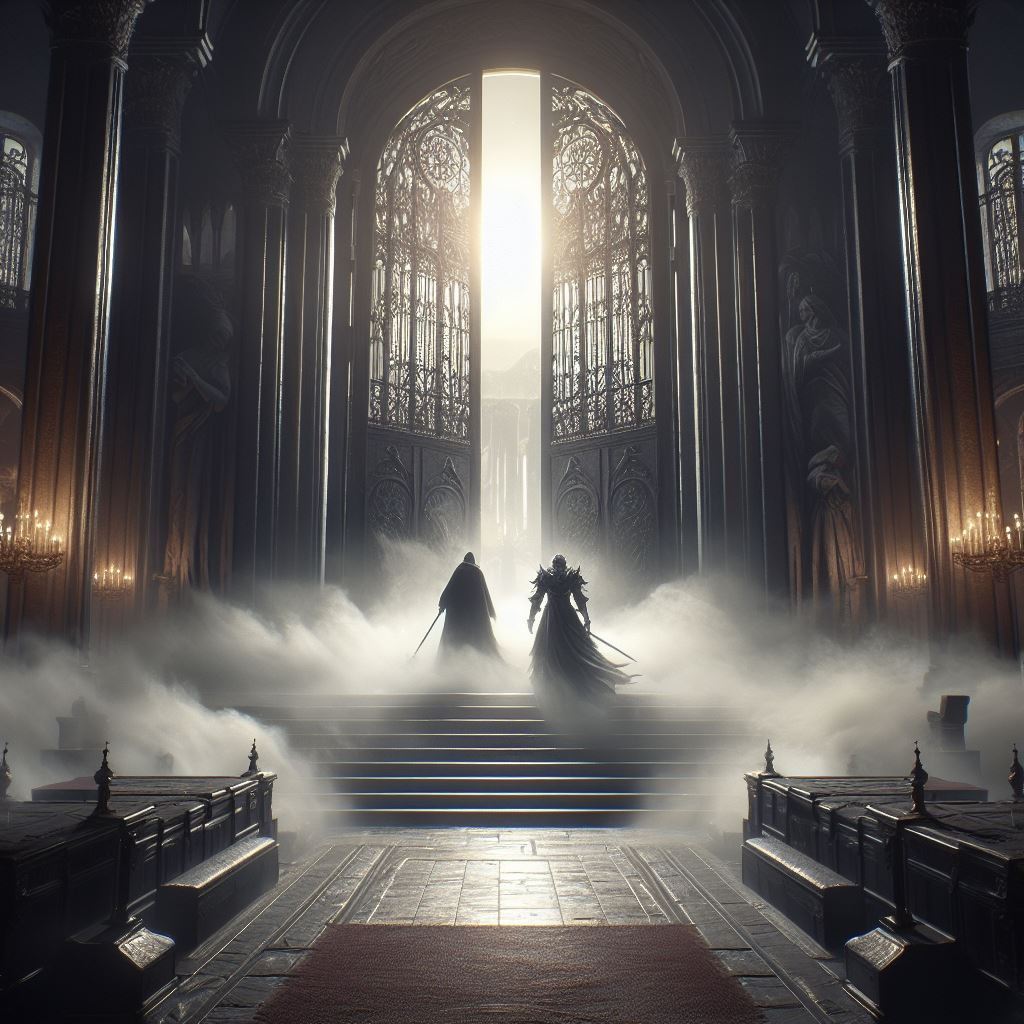 "На тридцатый день, после зарождения первого города, первого государства, яркий день сменился ночью, которая сменилась вновь днём, и так по кругу. Жители города умерли во мгновение, и в следующе открыли глаза, вернувшись к жизни. Любой сосуд наполнялся и опорожнялся, каждый раз, в содержимое менялось, сосуд мог наполнится как золотом и драгоценными камнями, так и кровью с костями. Тени сходили с ума, извиваясь, принимая чужую форму, и вновь даваясь в пляс. Смертный подняли свой взгляд к небесам, откуда на них смотрели пятеро сущностей, Тёмная - словно ночь, Светлая - ярче любого солнца, Серая - усеянная костями, Зелёная - которая была словно сад, и Бесцветная - которая поглощала всё вокруг, создавая пустоту."