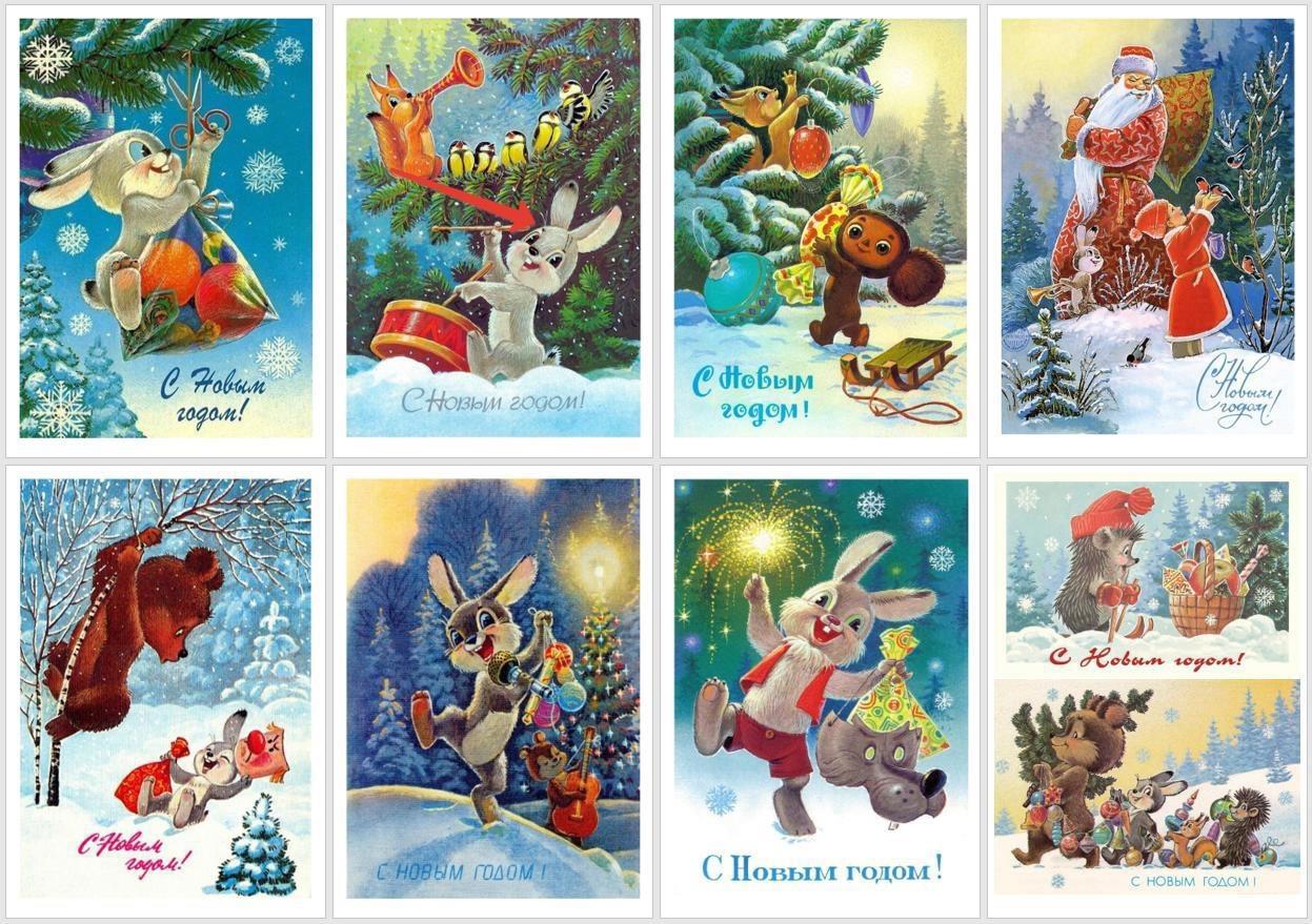 И все эти годы замечательный художник Владимир Зарубин рисовал Новый год! С милыми зверюшками, добрым Дед морозом и красавицей Снегурочкой. Уверена, что эти открытки запомнились всем, даже тем, кто особо ими и не интересовался. Вот они такие: