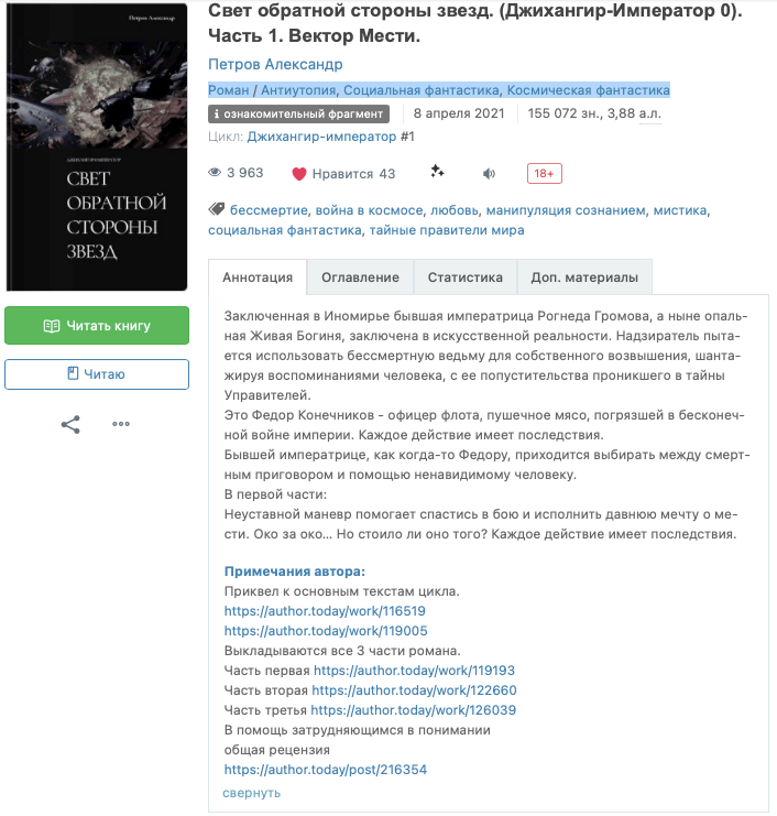 Автор: MennadУвы, автор скрыл книгу в черновики, поэтому скромненько тут размещусь....