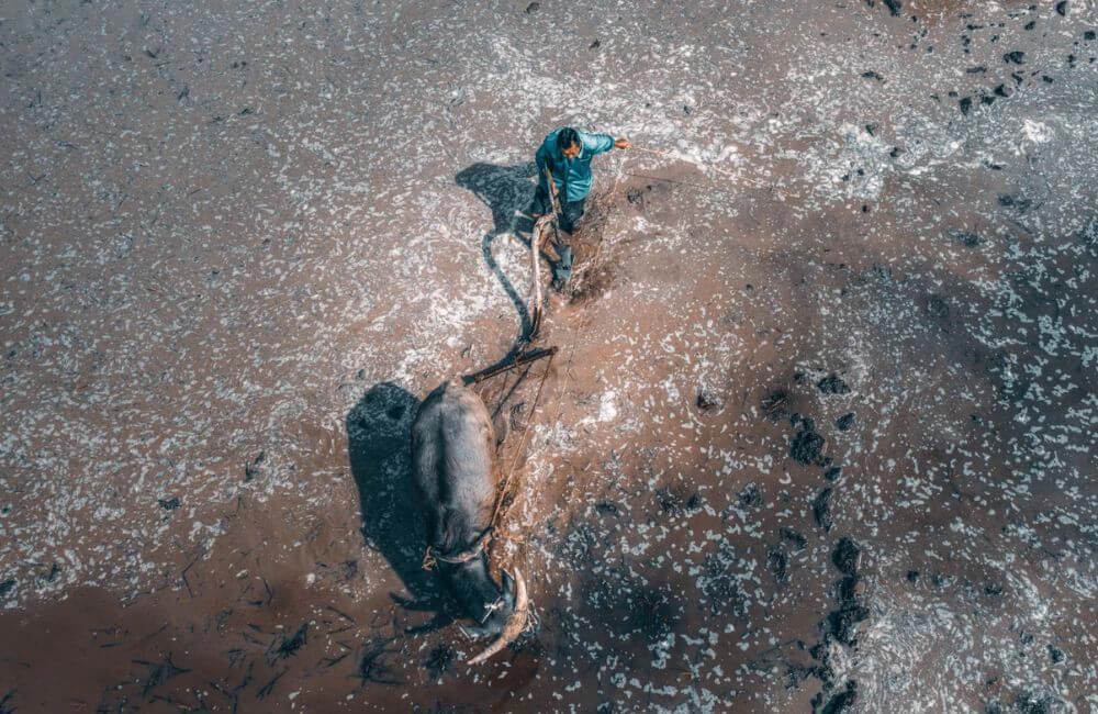 Пользователь социальной сети @EmptyMountainBird сделал эту фотографию под названием “Пахарь ” в Гуйчжоу, Китай. Эта фотография стала победителем конкурса DJI SkyPixel, и на ней изображен мужчина и его скот, обрабатывающий землю.