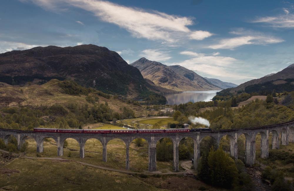 Здесь изображен виадук Гленфиннан, железнодорожный путепровод, расположенный в Инвернессшире, Шотландия. Он был построен в конце 1800-х годов, и вы можете найти его на вершине озера Лох-Шил в Западной Шотландии. Линия работает и по сей день, являясь важнейшей артерией для экономики Хайленда. Летом по этой линии курсирует популярный туристический поезд Якобит, а также Королевский шотландец.