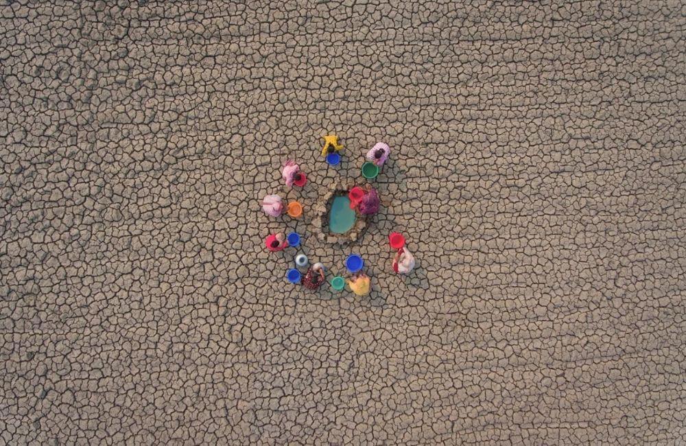 Женщины собирают воду из высохшего русла реки. Бангладеш.
