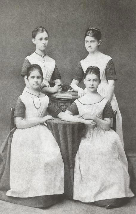 Четыре девушки в платьях институток. Екатеринбург, 1880 год