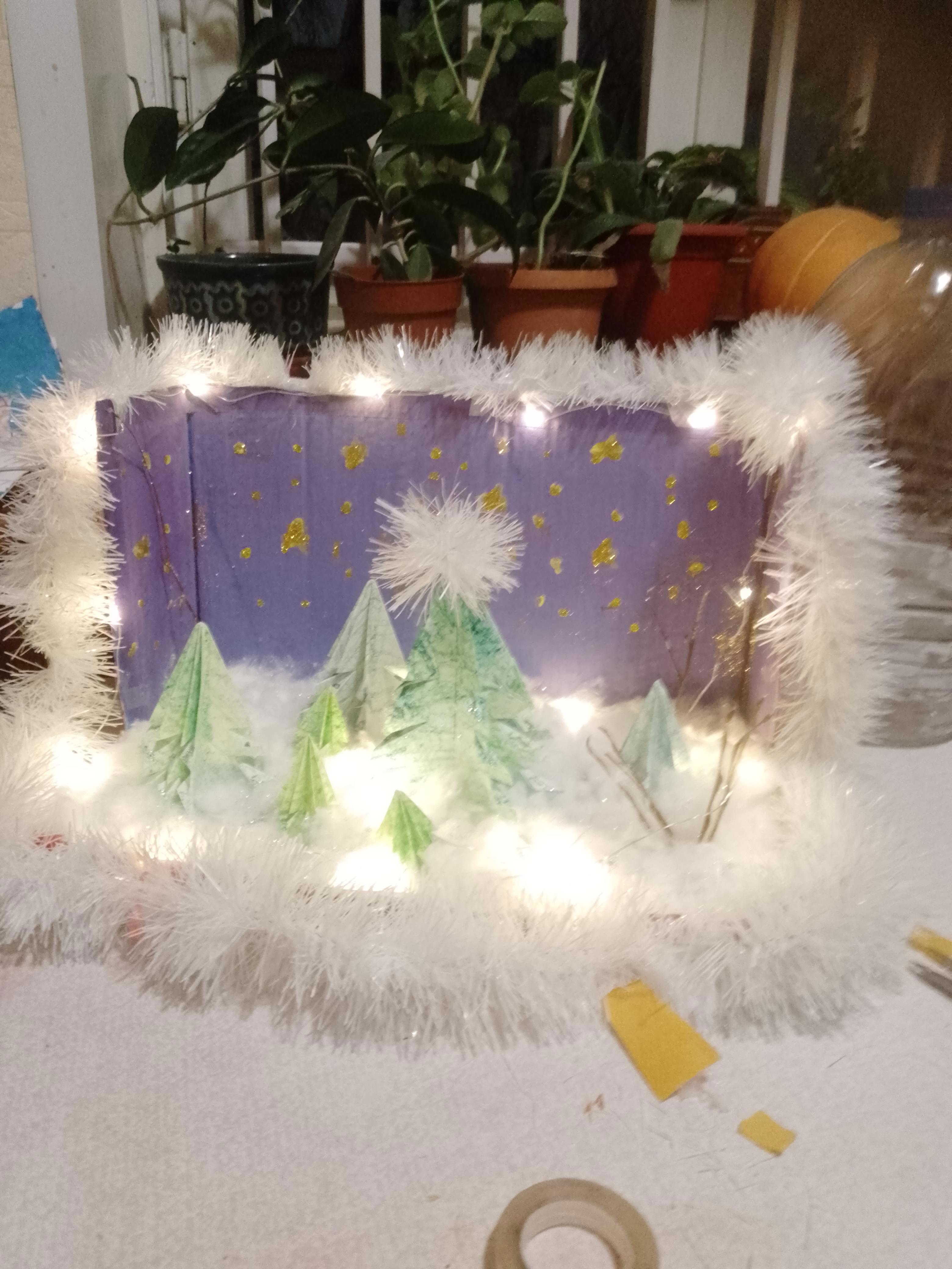 Вчера вечером собирала 1.5 часа. Покраска около часа. И сборка елочек и деревьев час