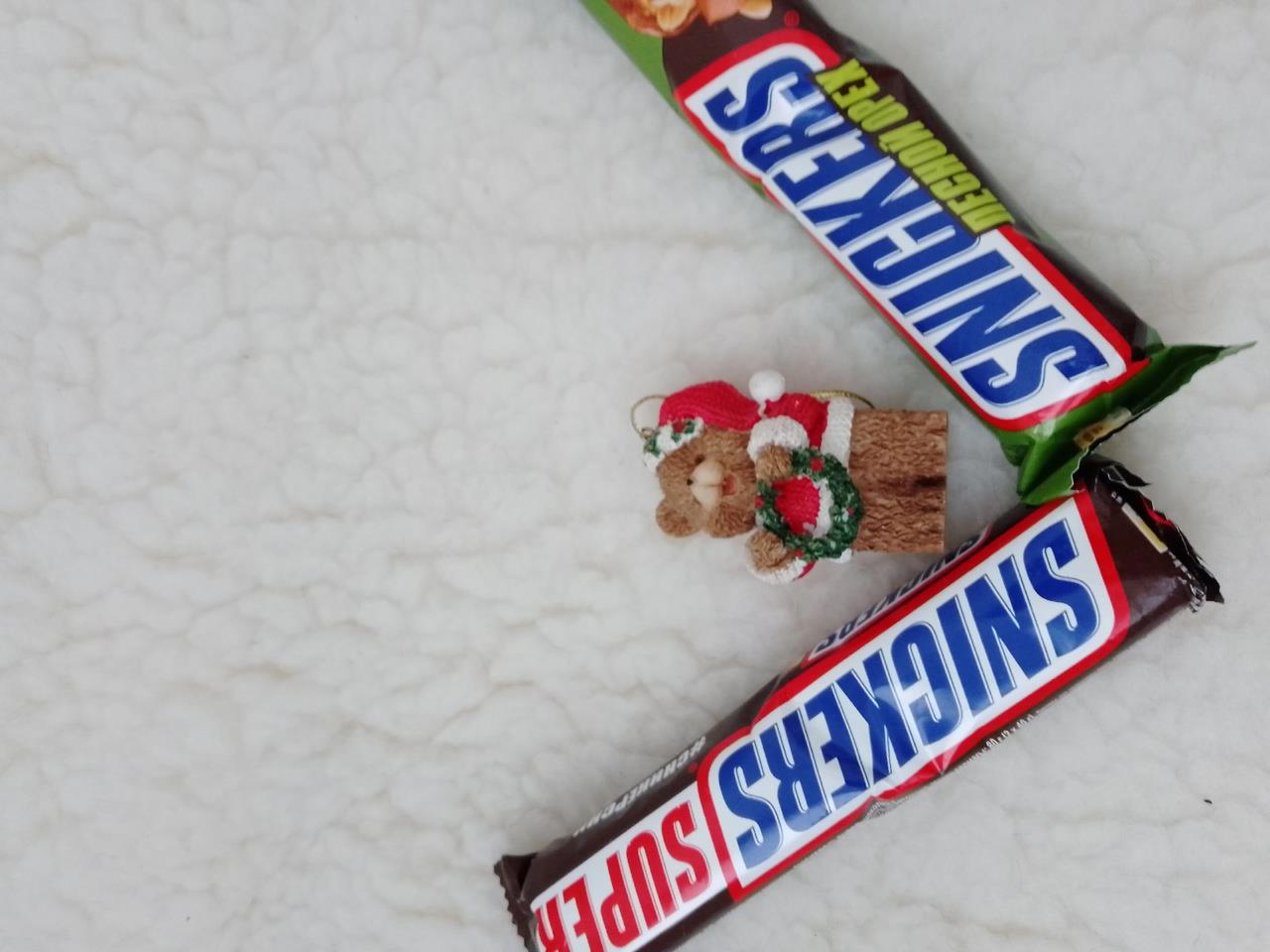 Новогодний сюрприз в виде крутого мишки и две жопослипательные конфеты с орешками.